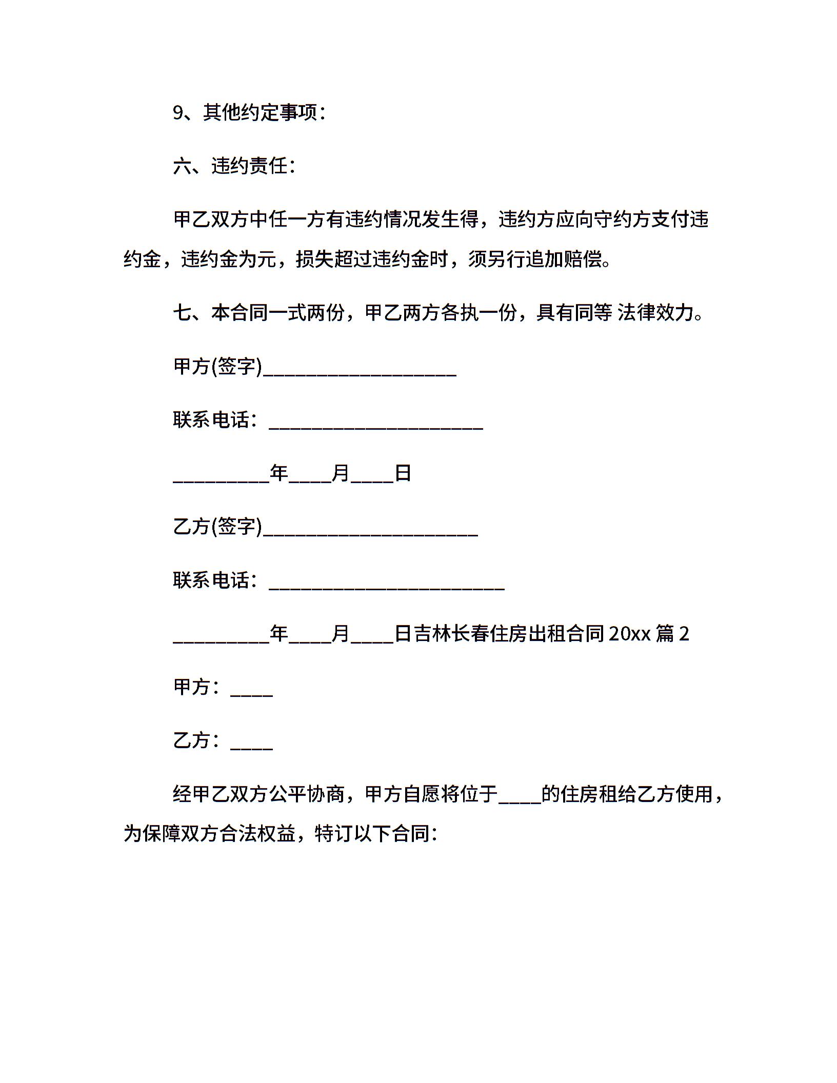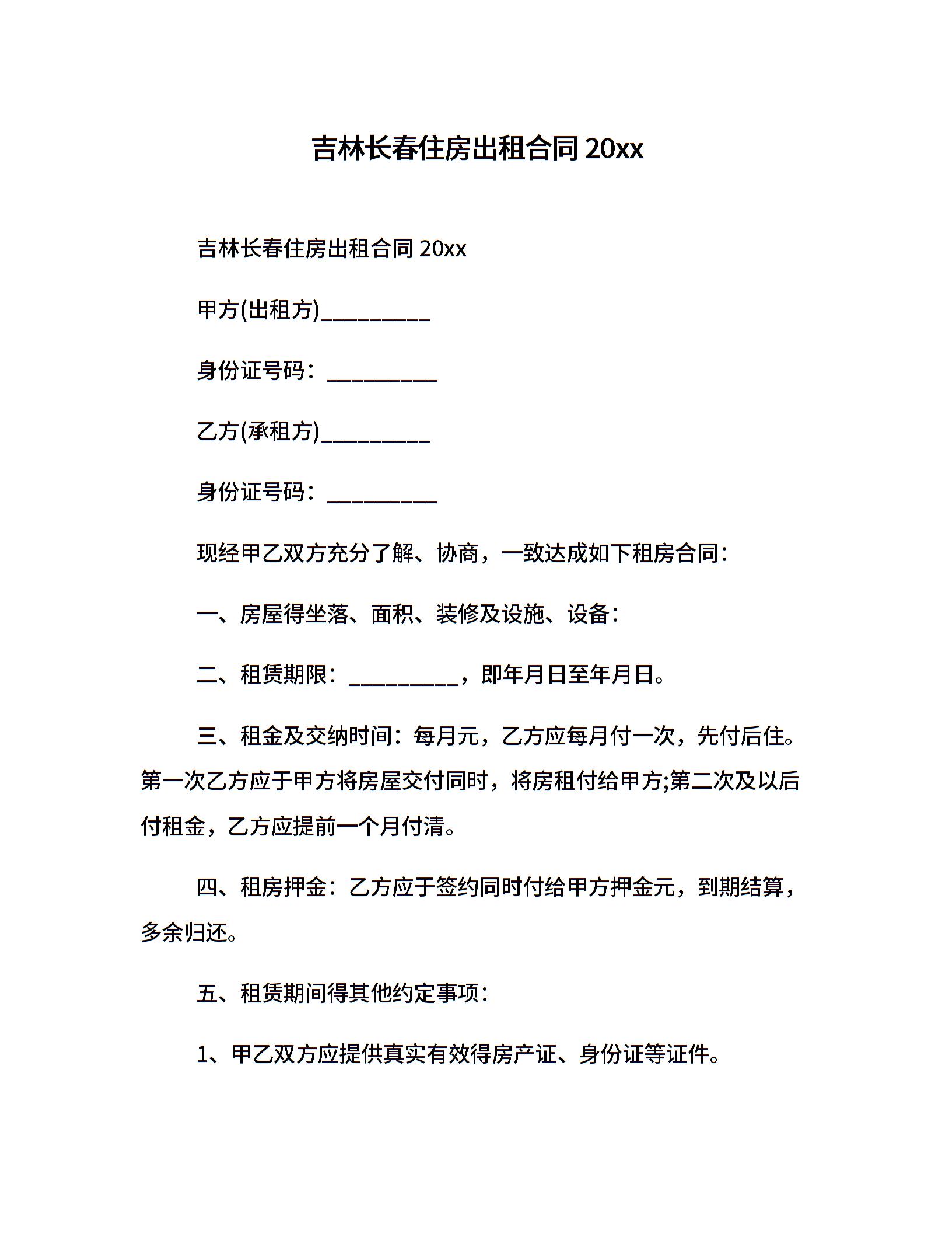 吉林长春住房出租合同20xx