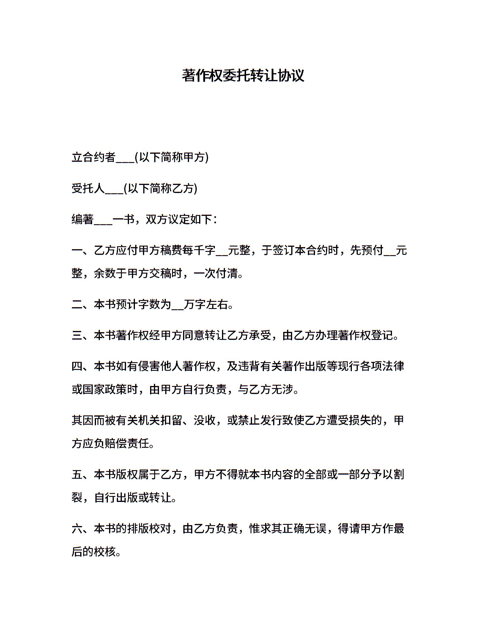 著作权委托转让协议