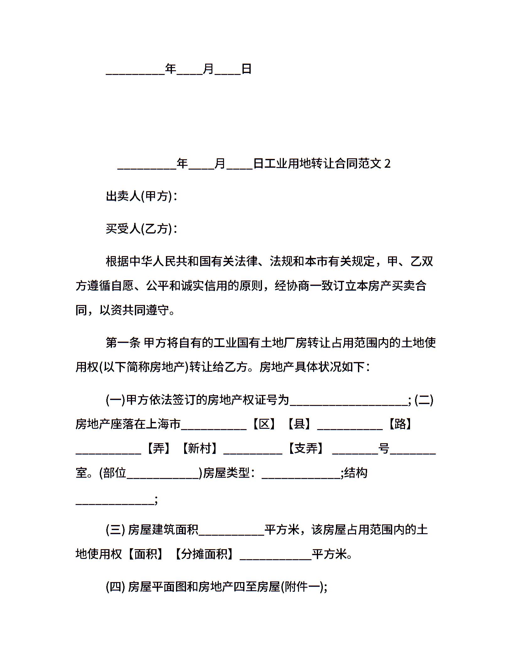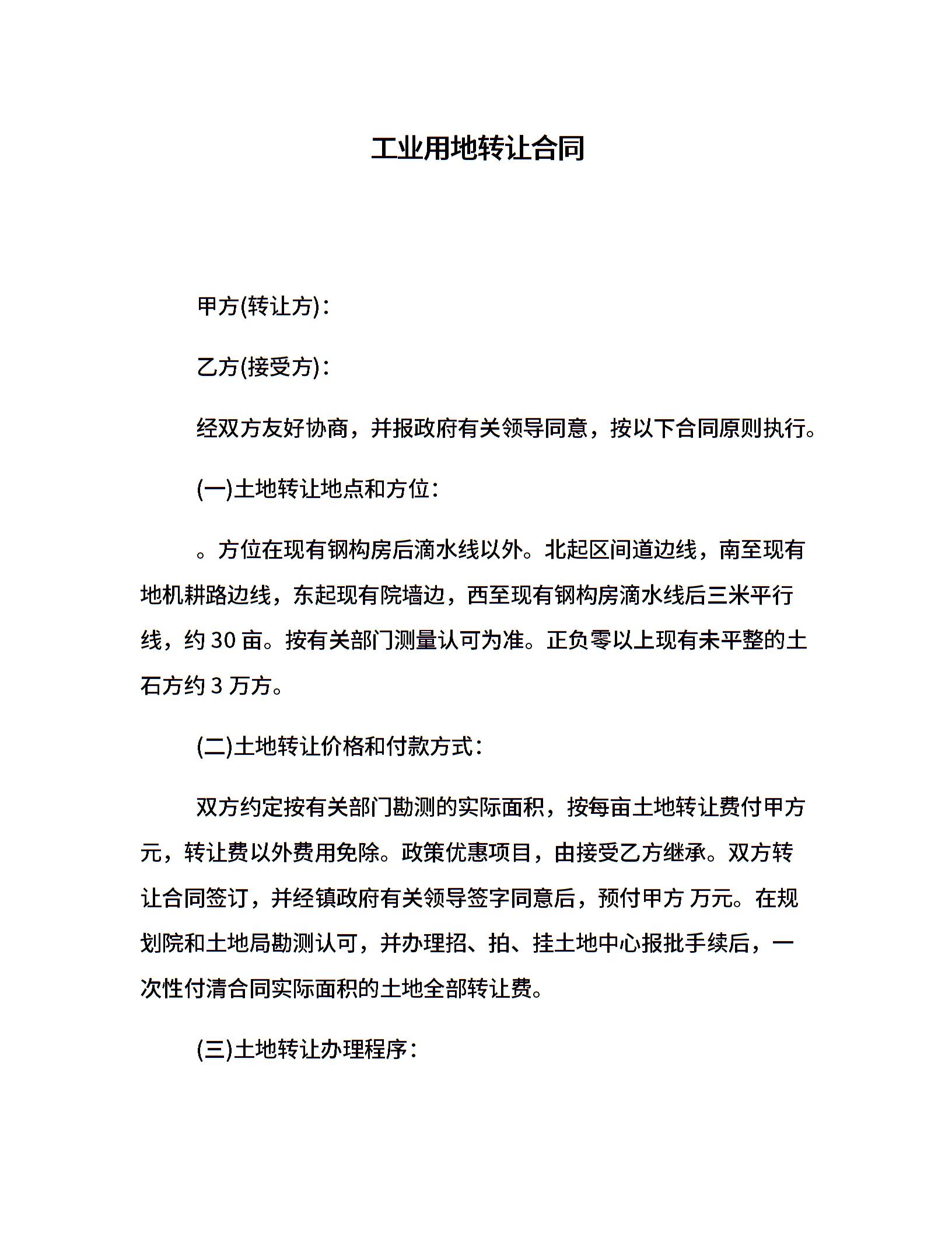 工业用地转让合同