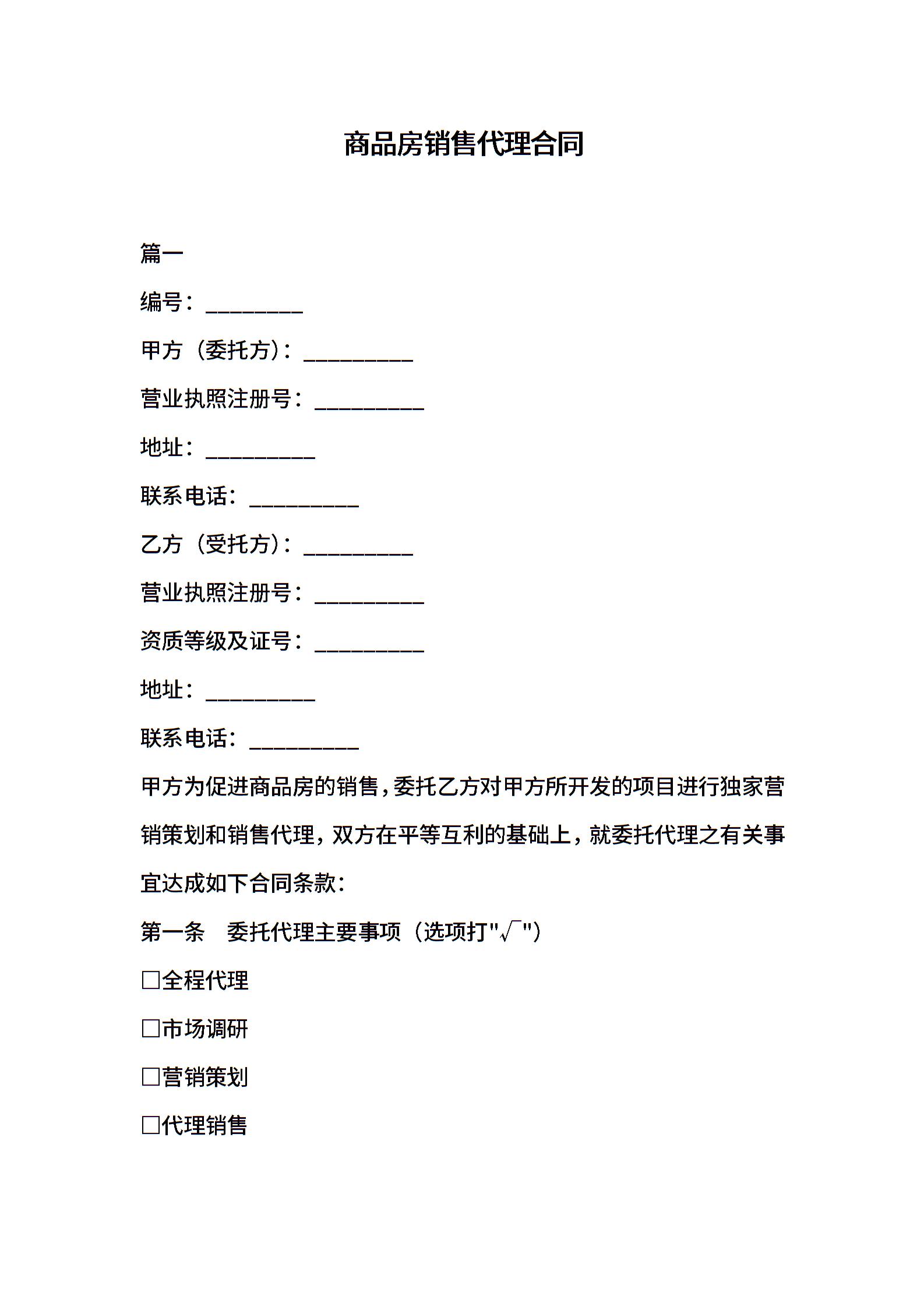 商品房销售代理合同