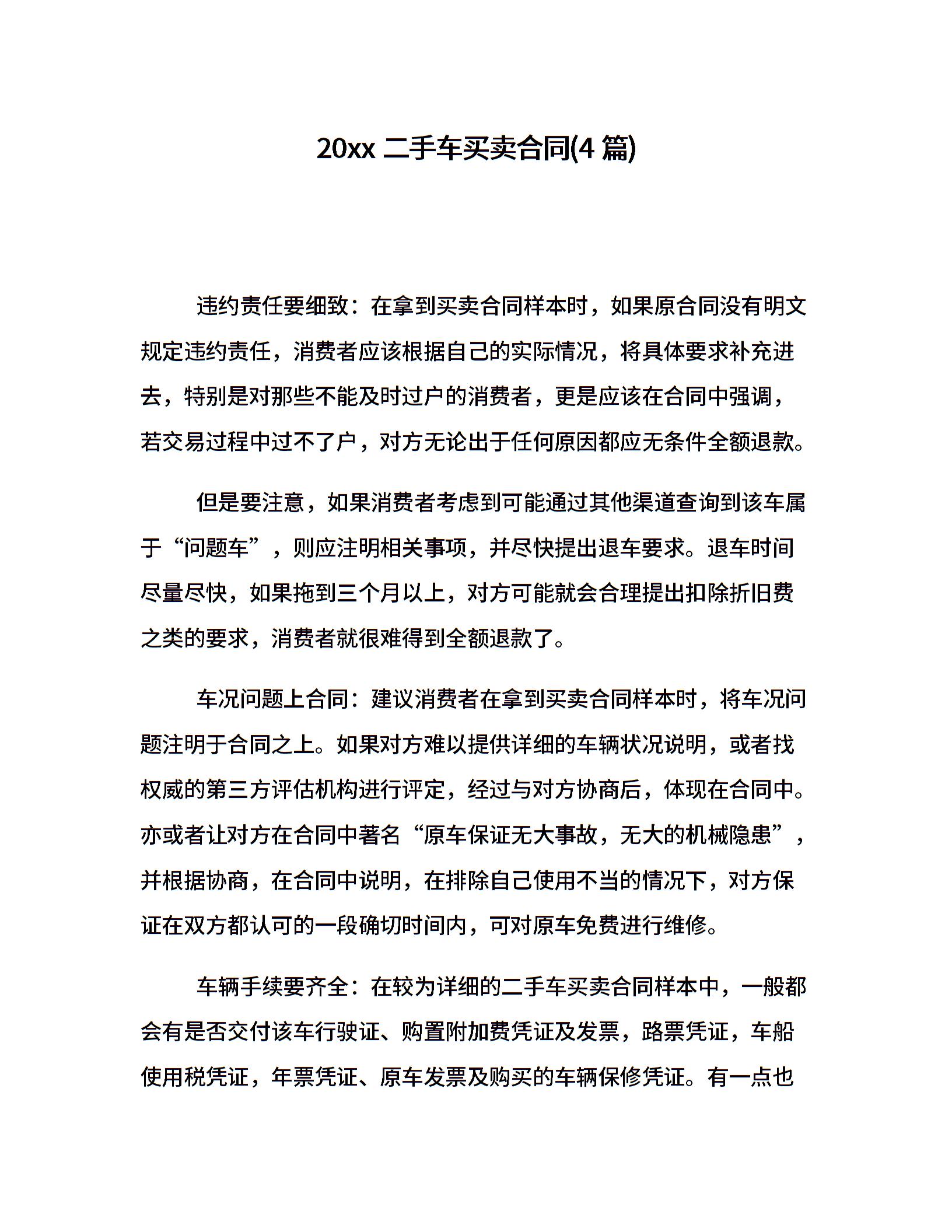 20xx二手车买卖合同(4篇)
