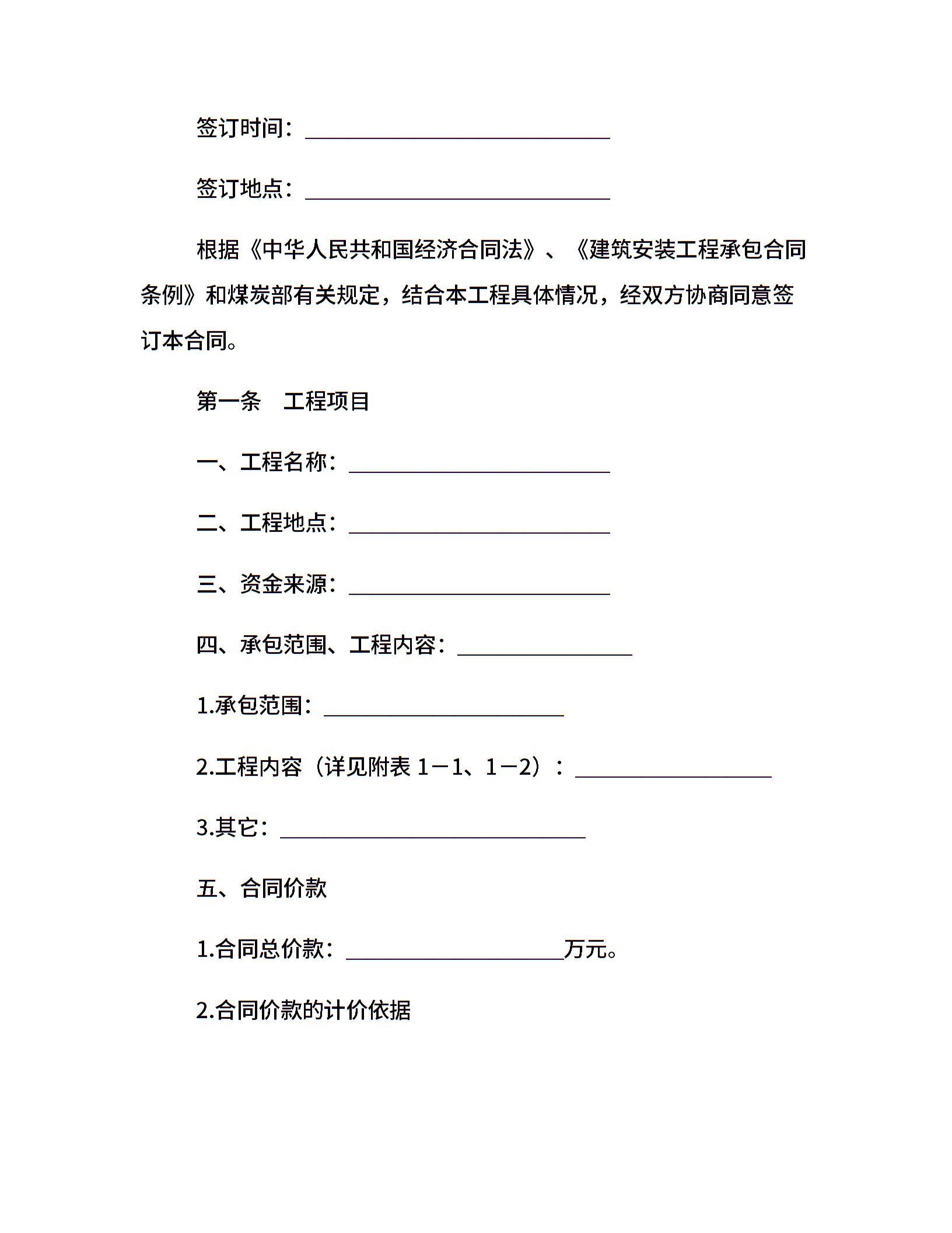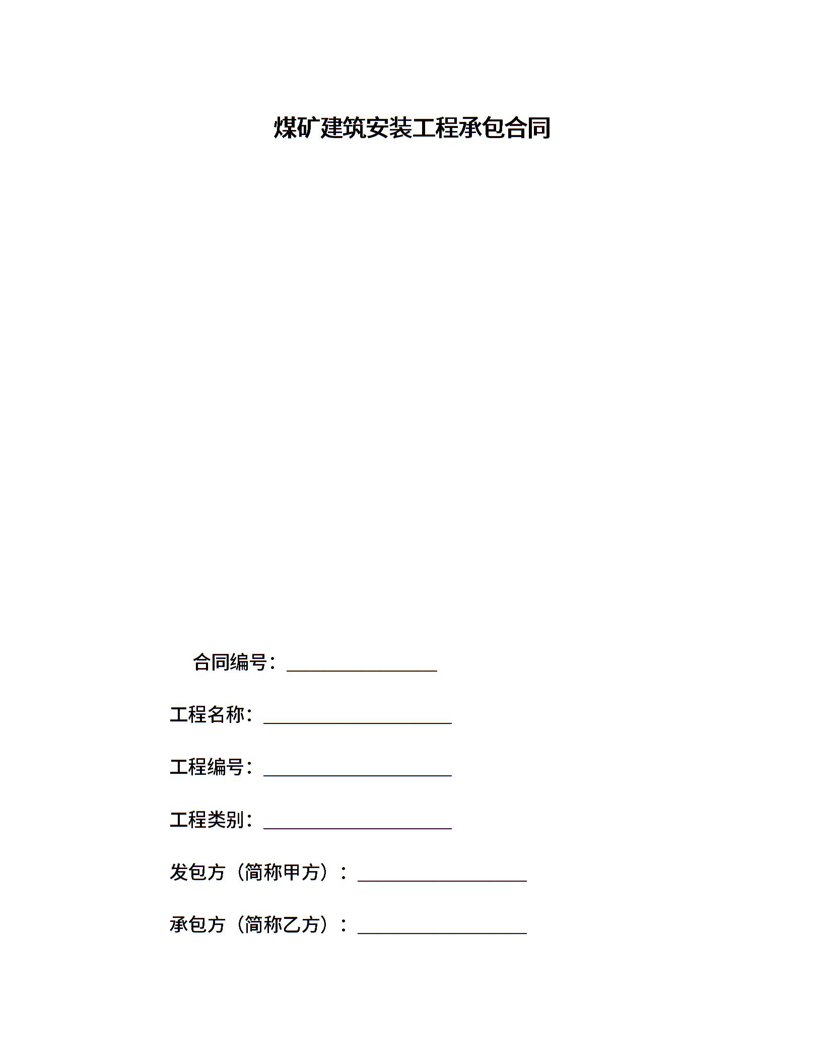 煤矿建筑安装工程承包合同