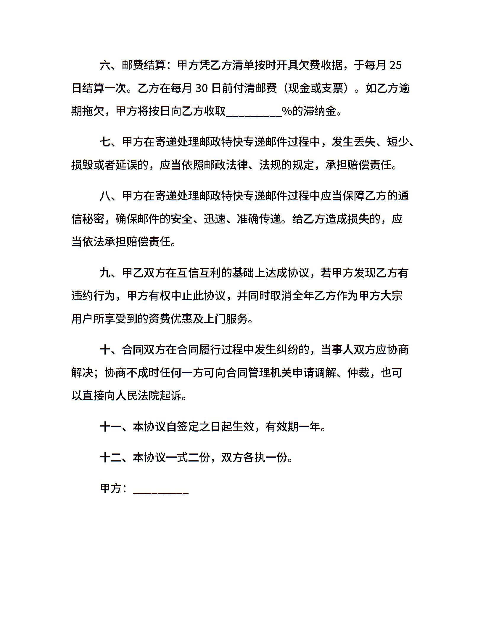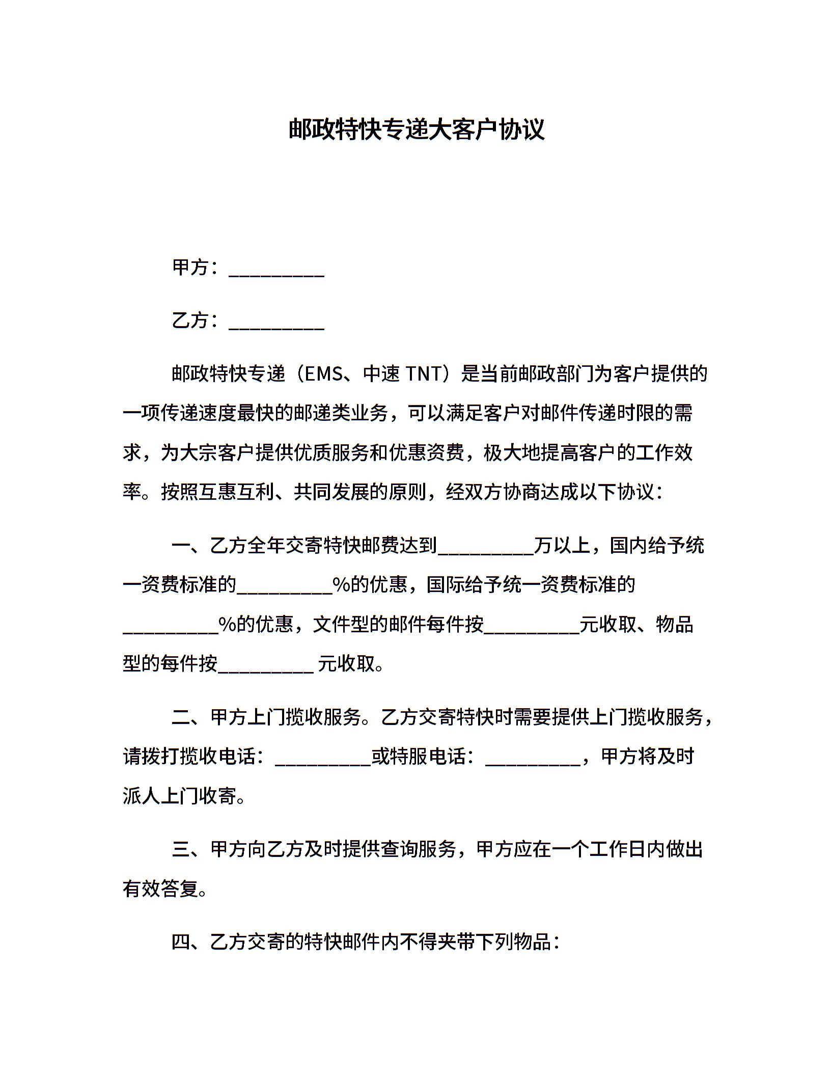 邮政特快专递大客户协议