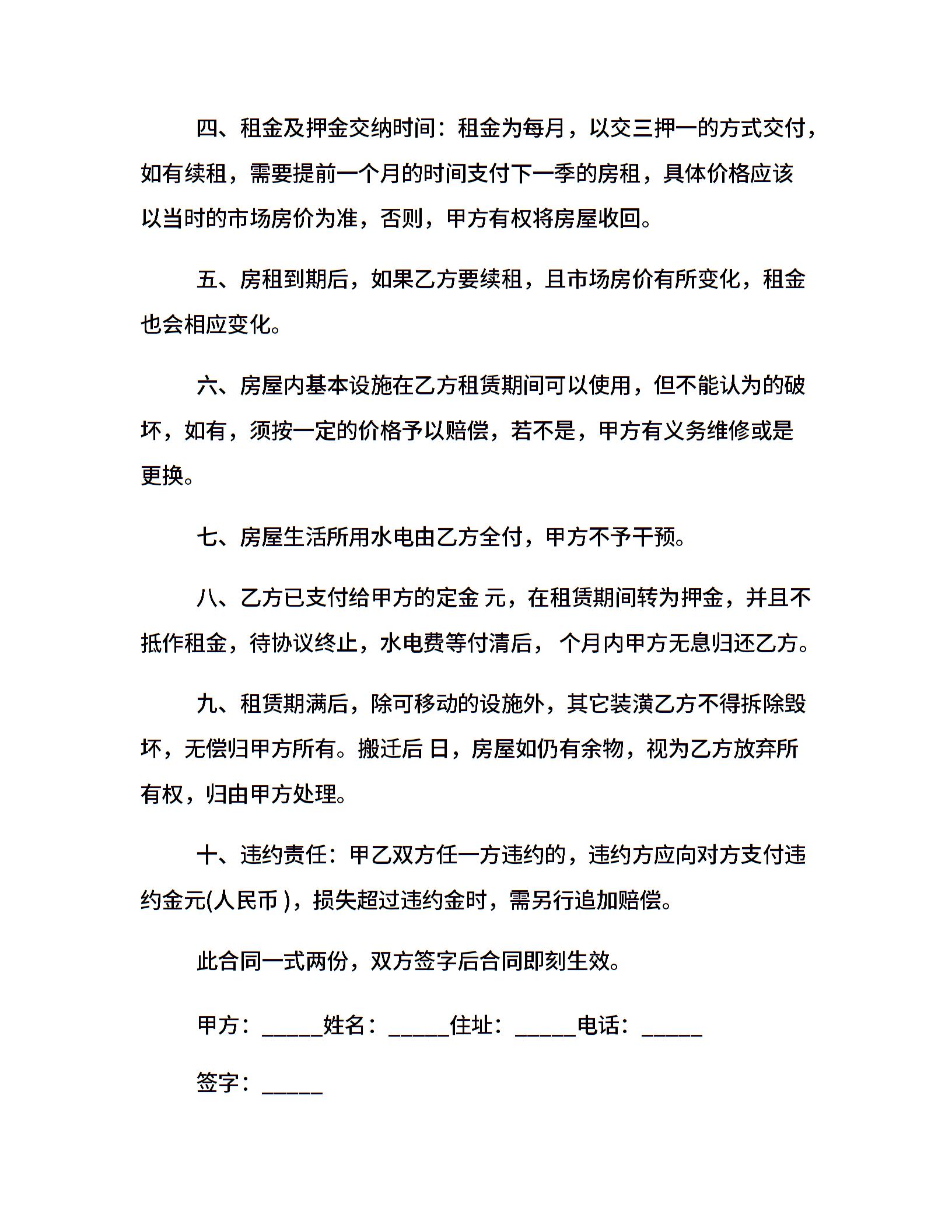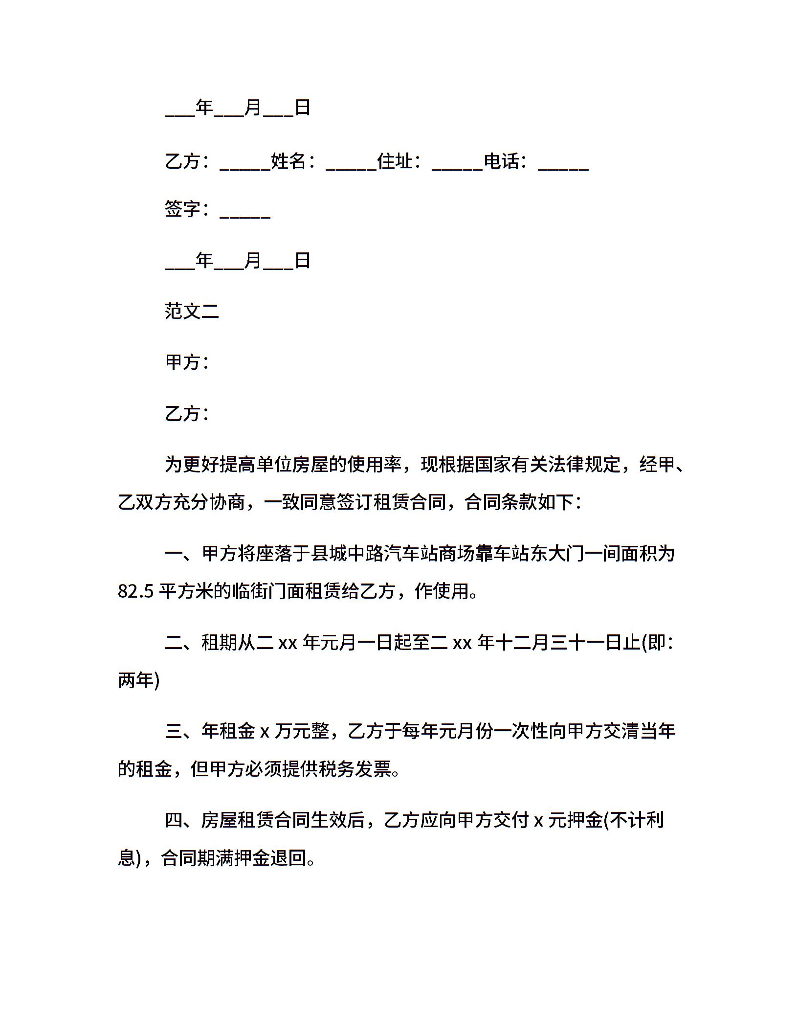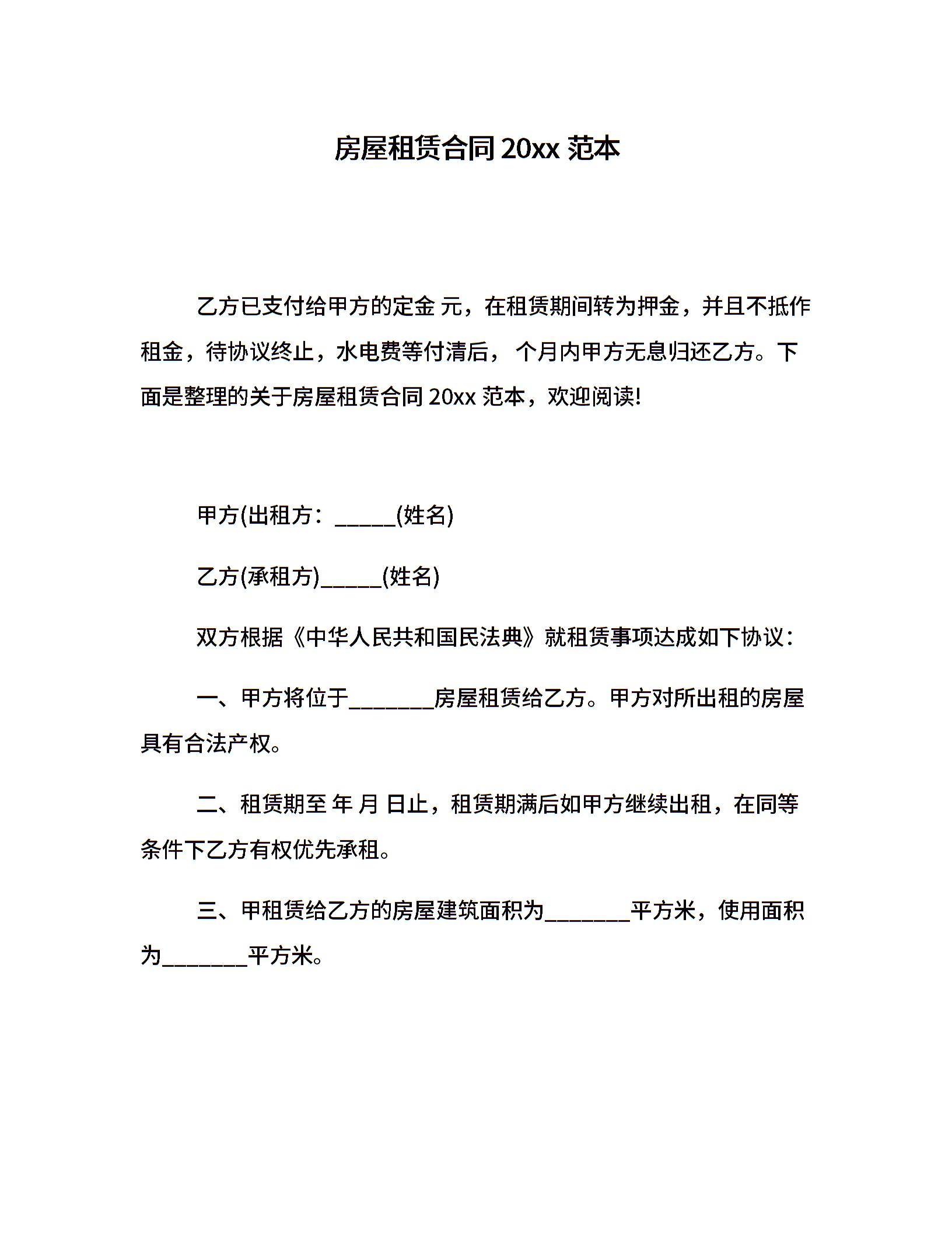 房屋租赁合同20xx范本