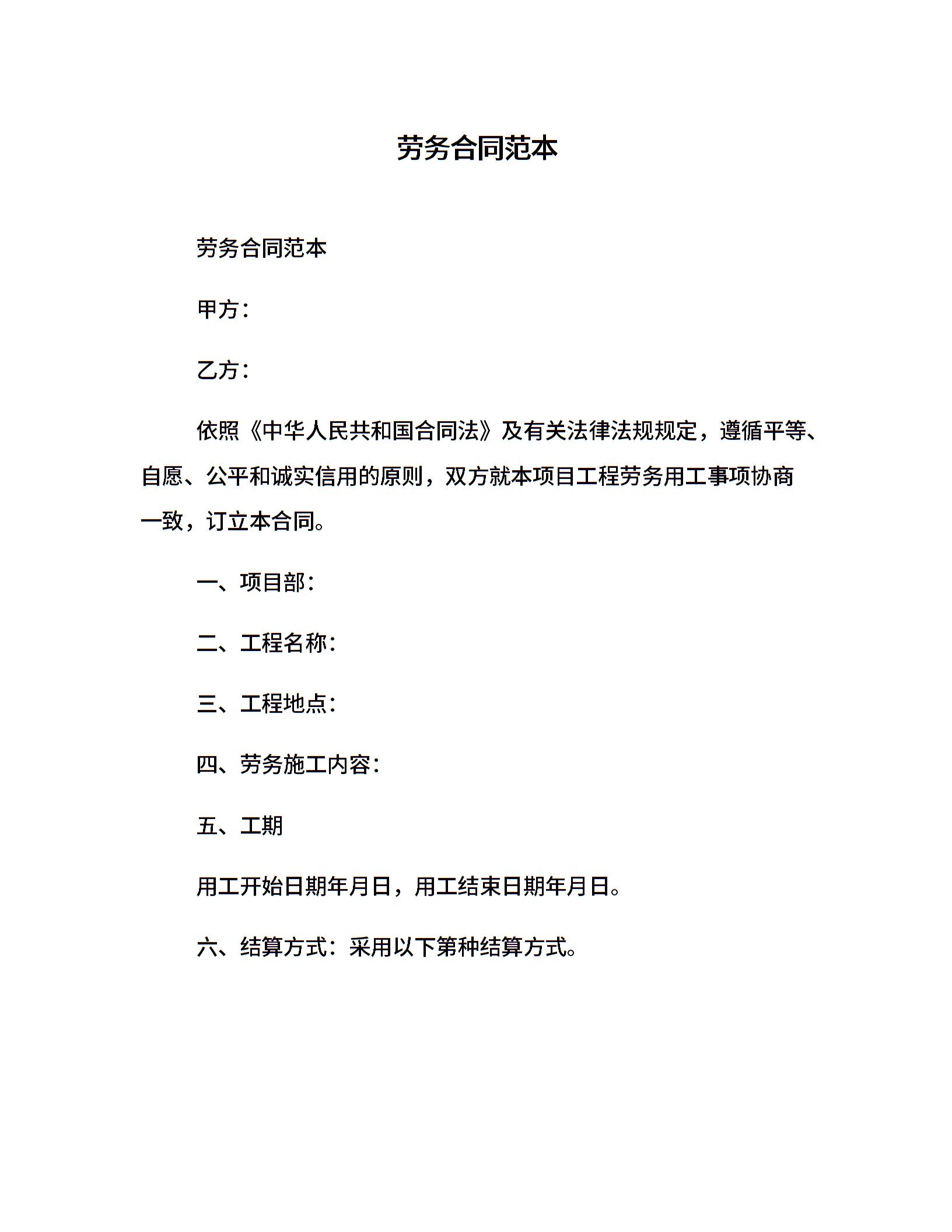 劳务合同范本