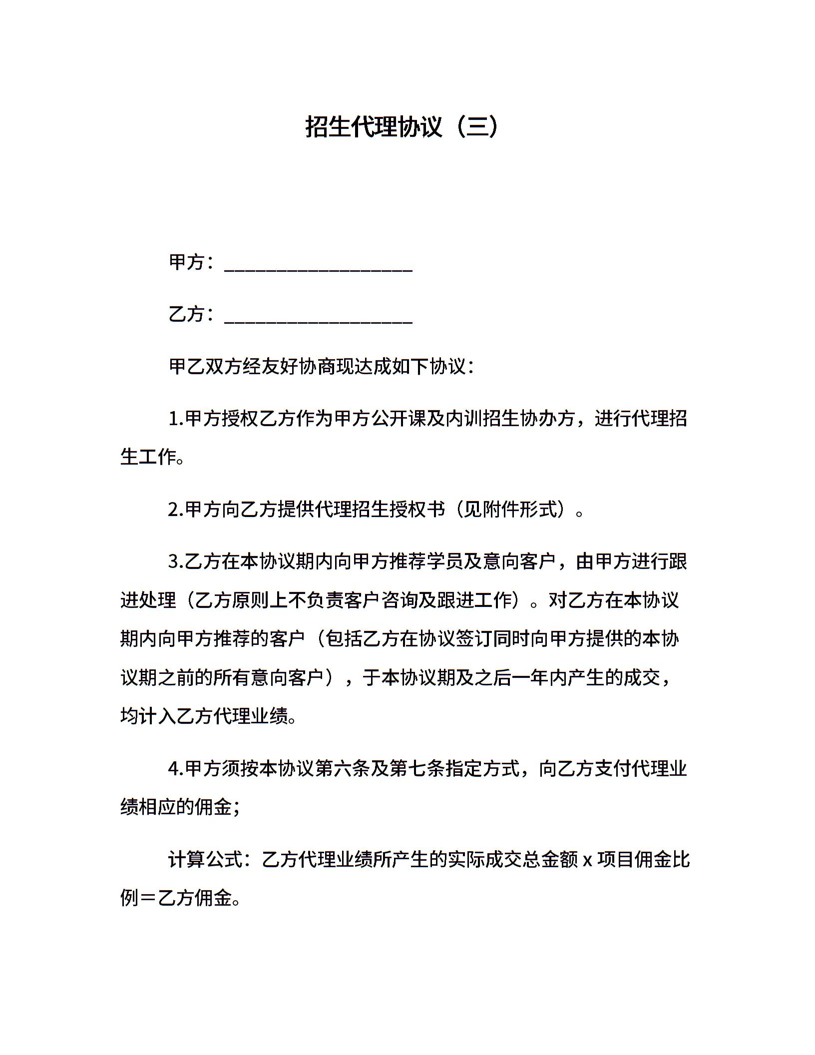 招生代理协议(三)
