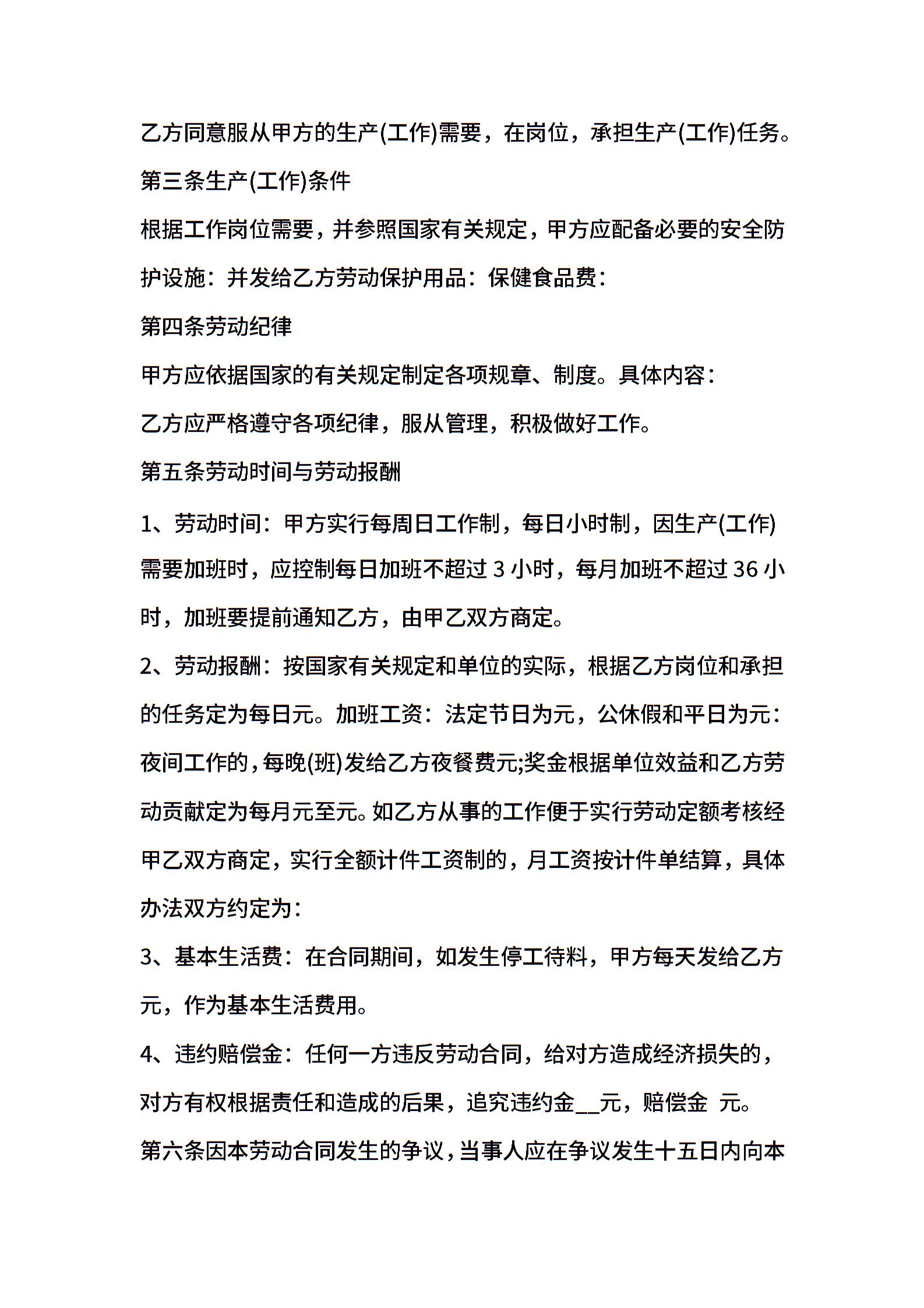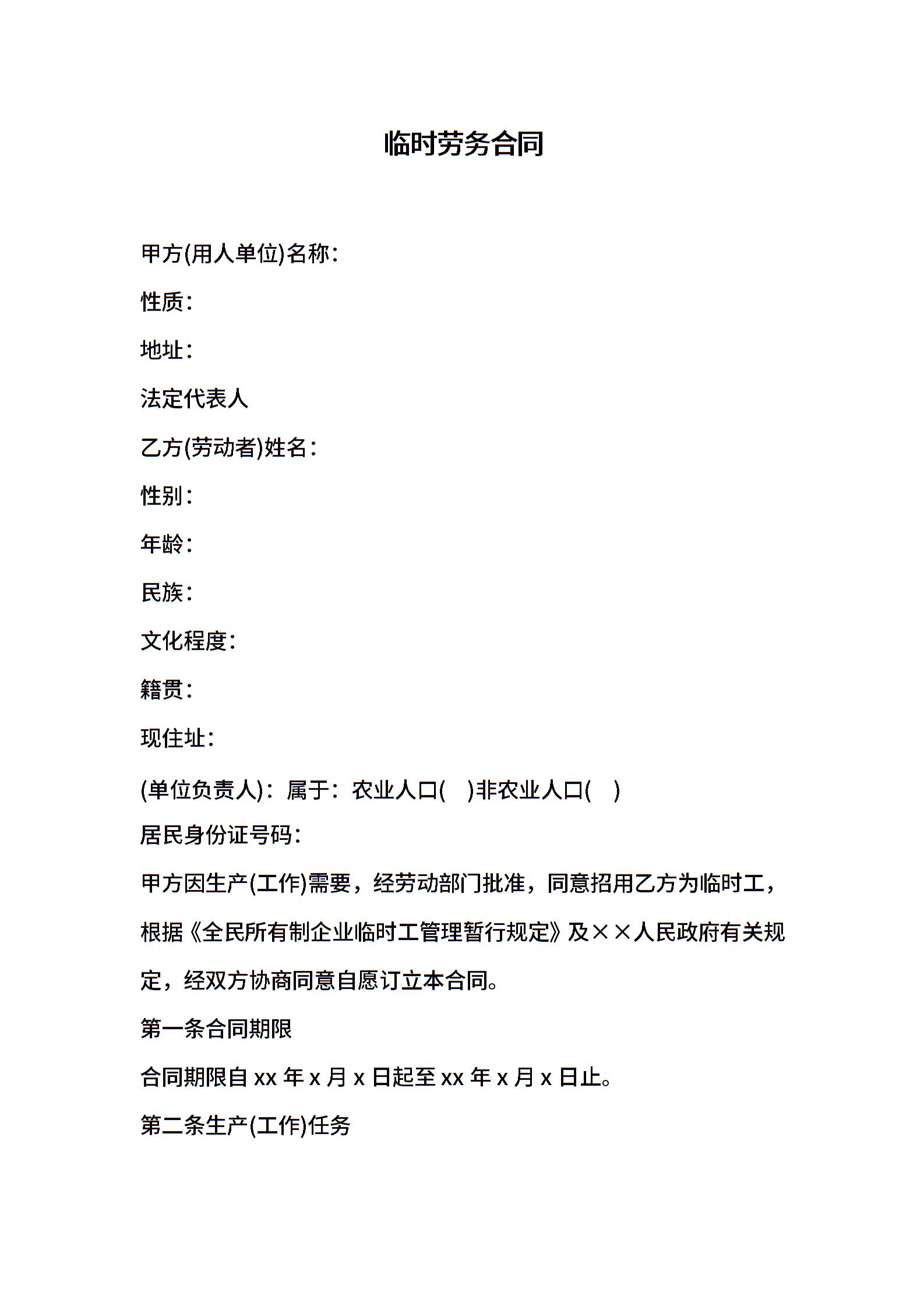 临时劳务合同范本