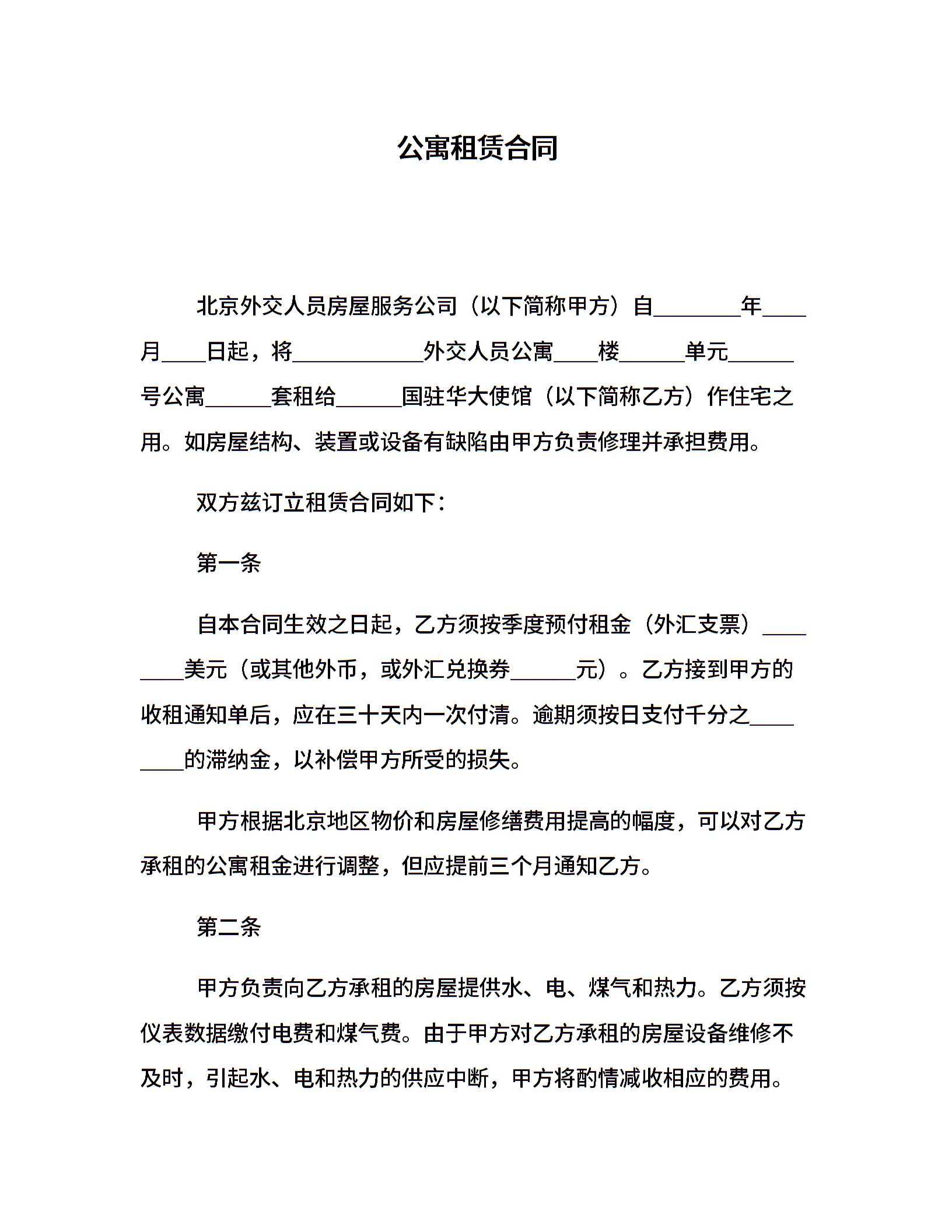 公寓租赁合同