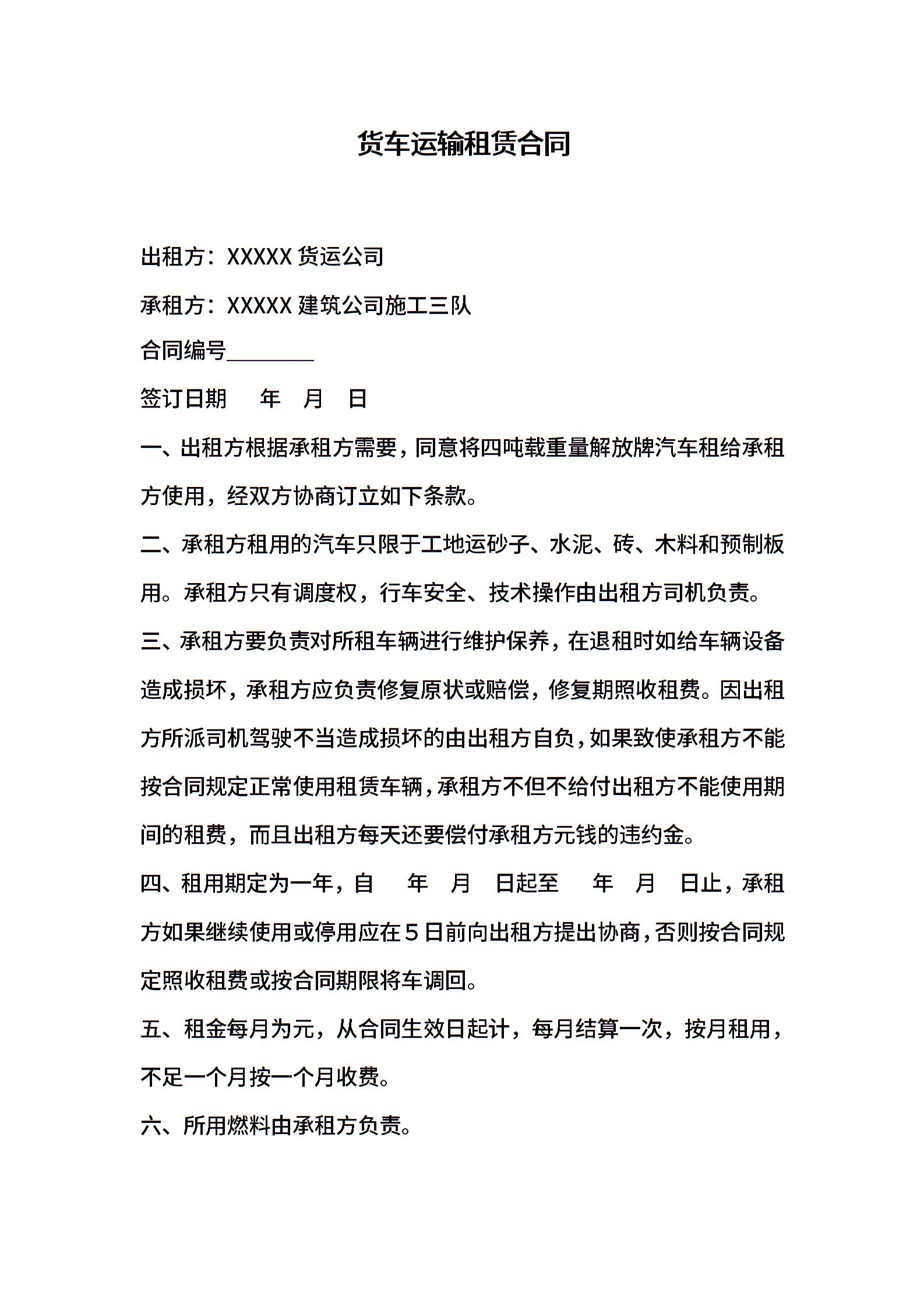 货车运输租赁合同