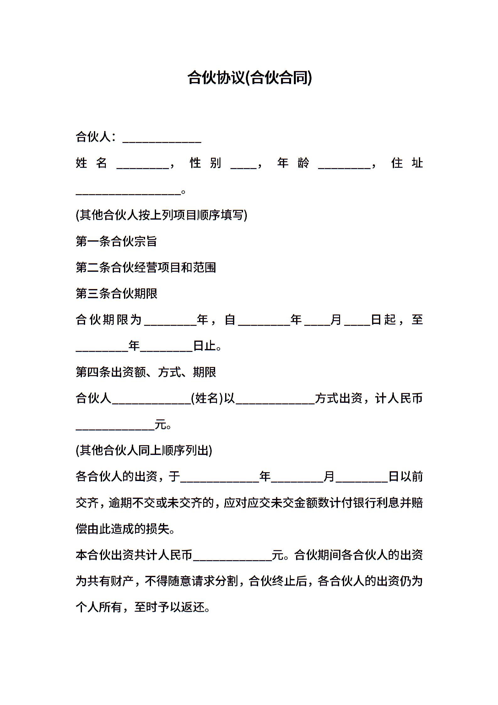 合伙协议(合伙合同)