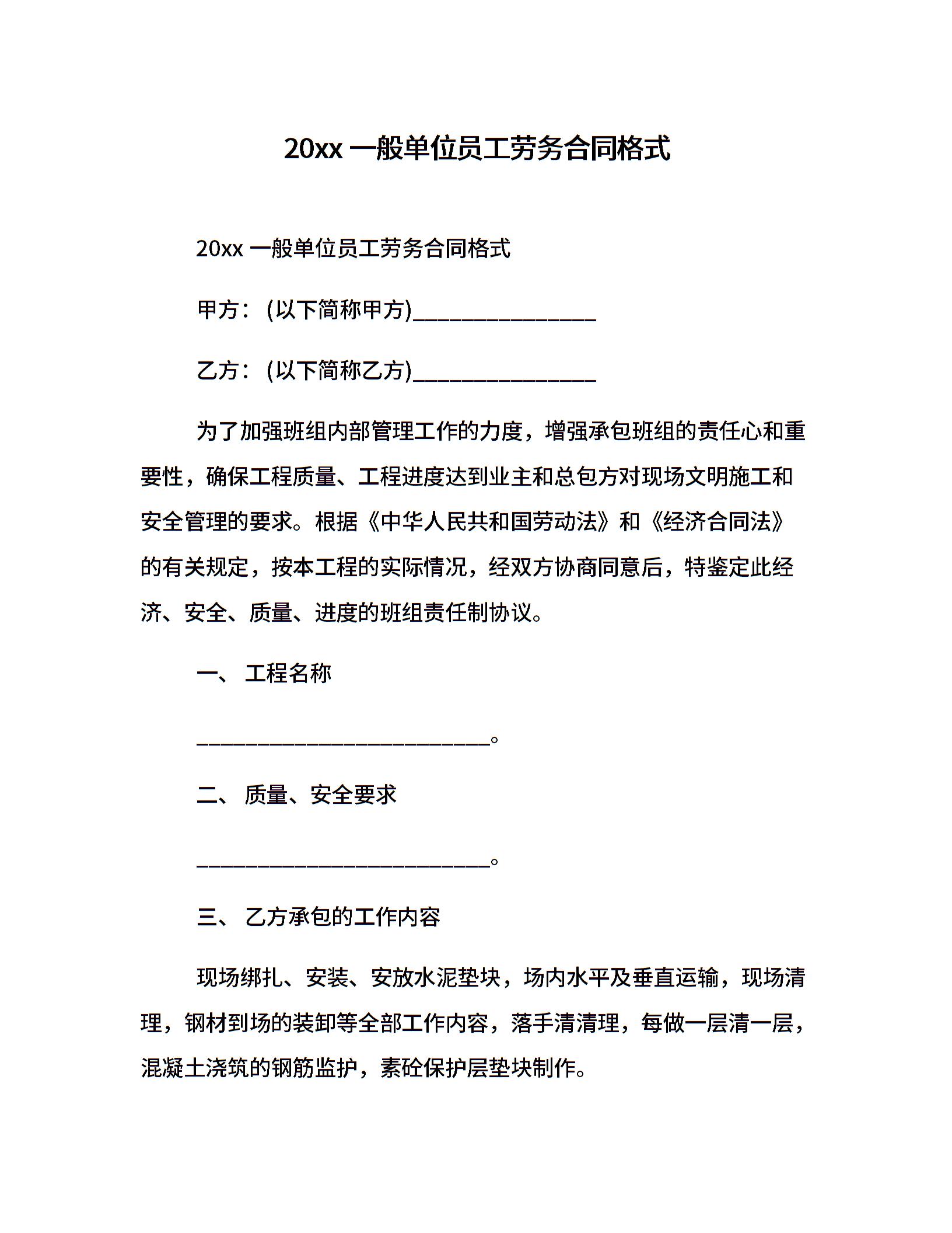 20xx一般单位员工劳务合同格式