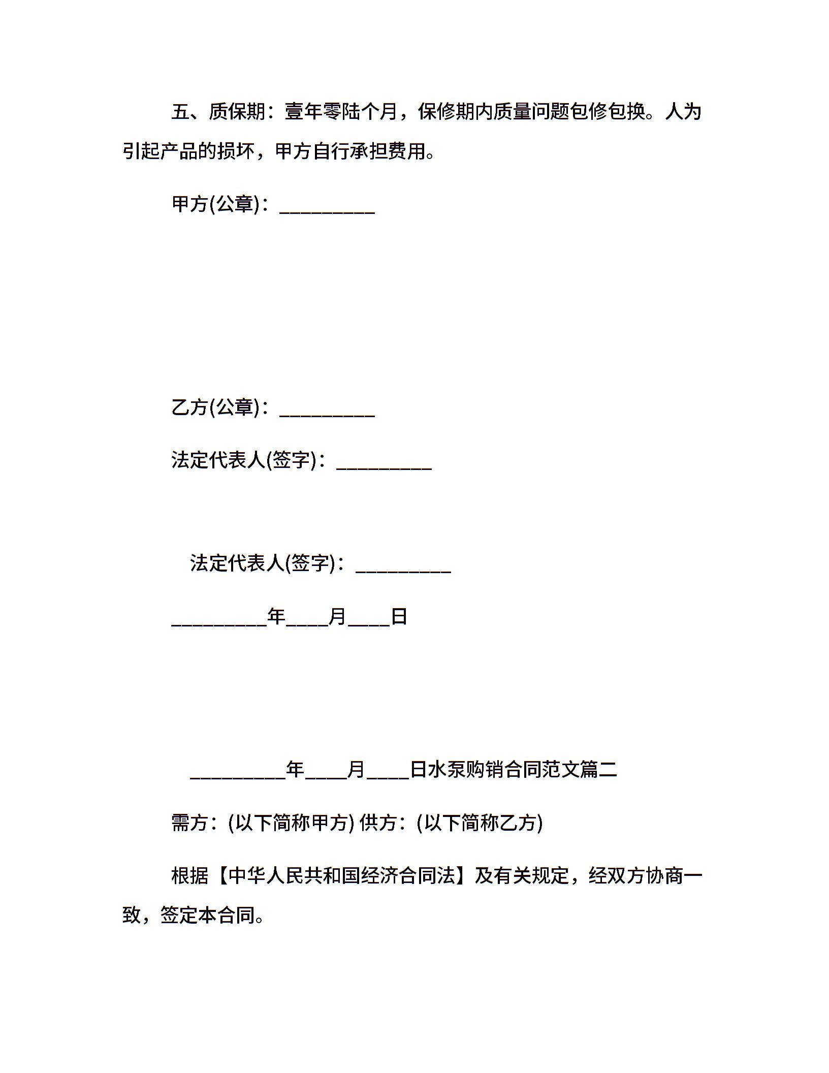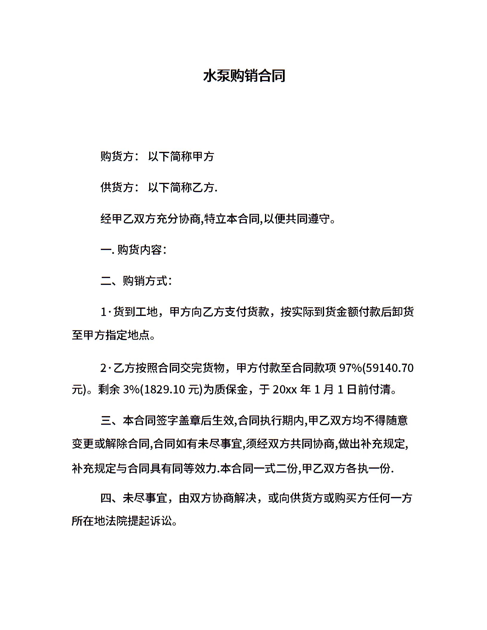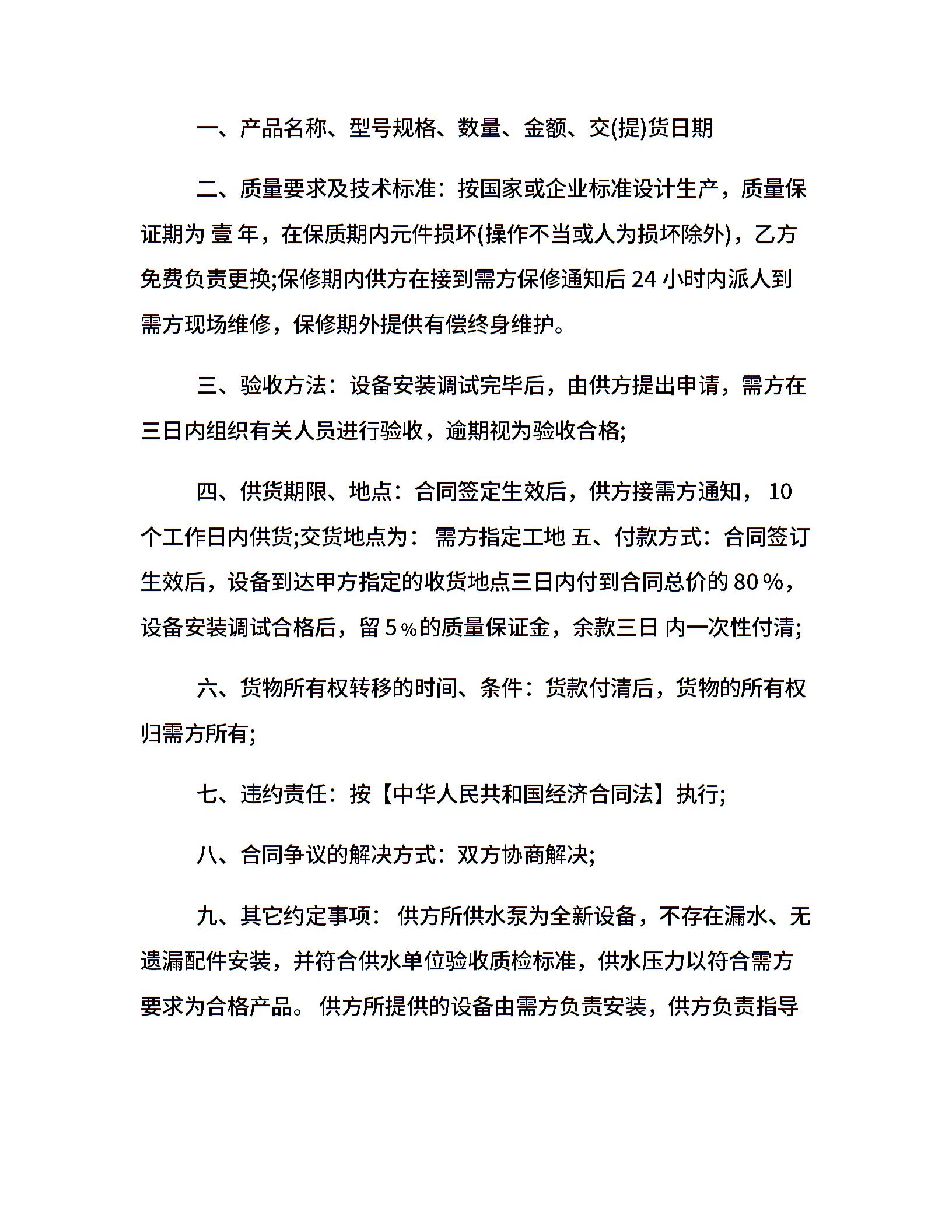 水泵购销合同