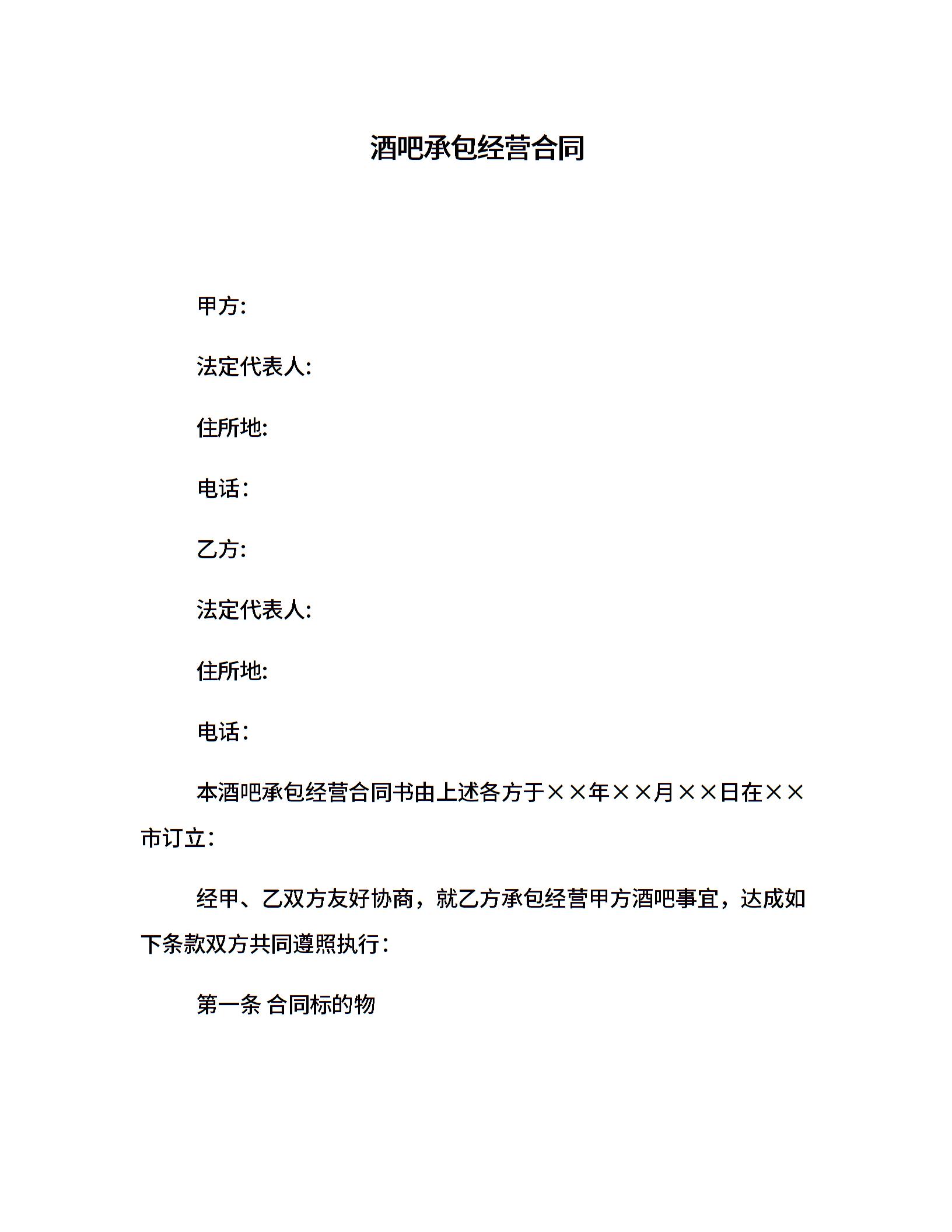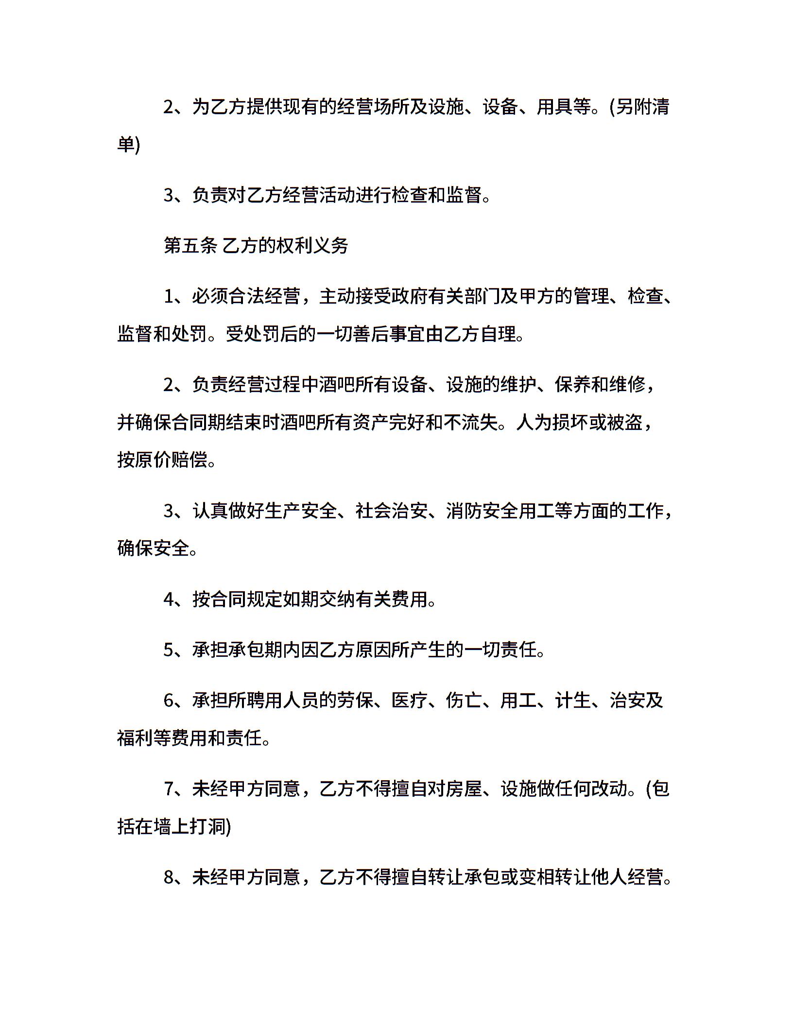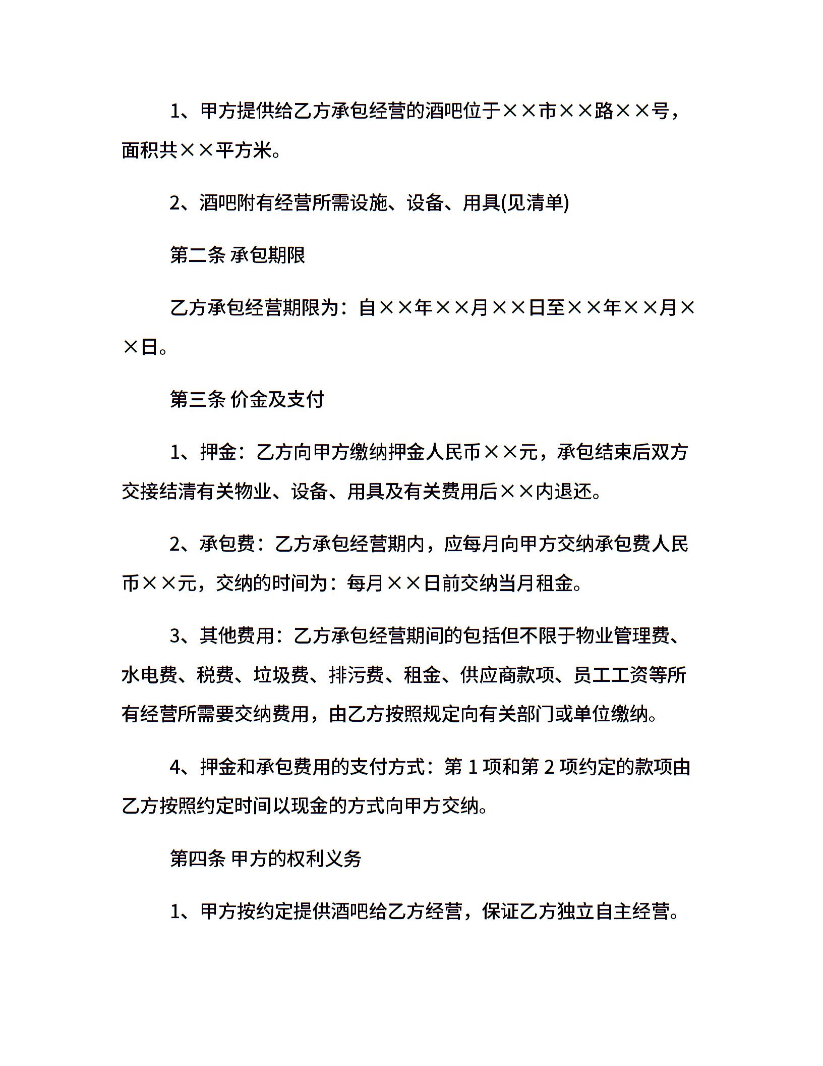 酒吧承包经营合同