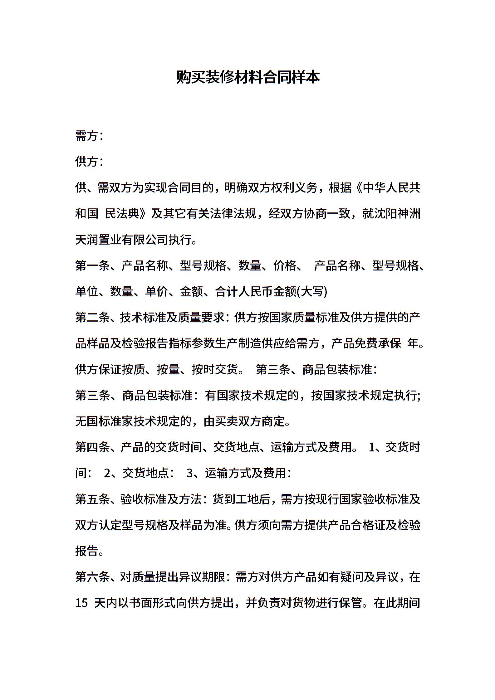 购买装修材料合同样本