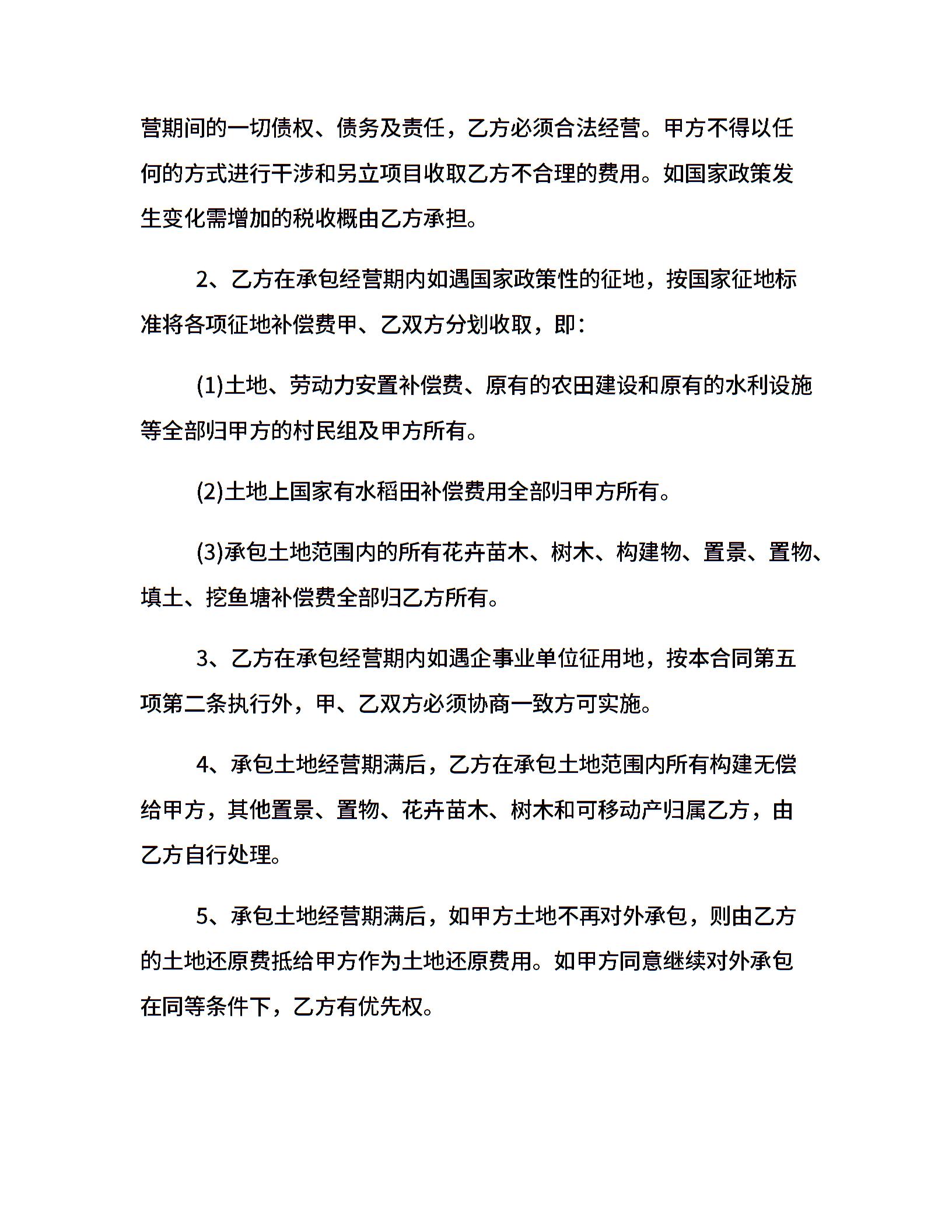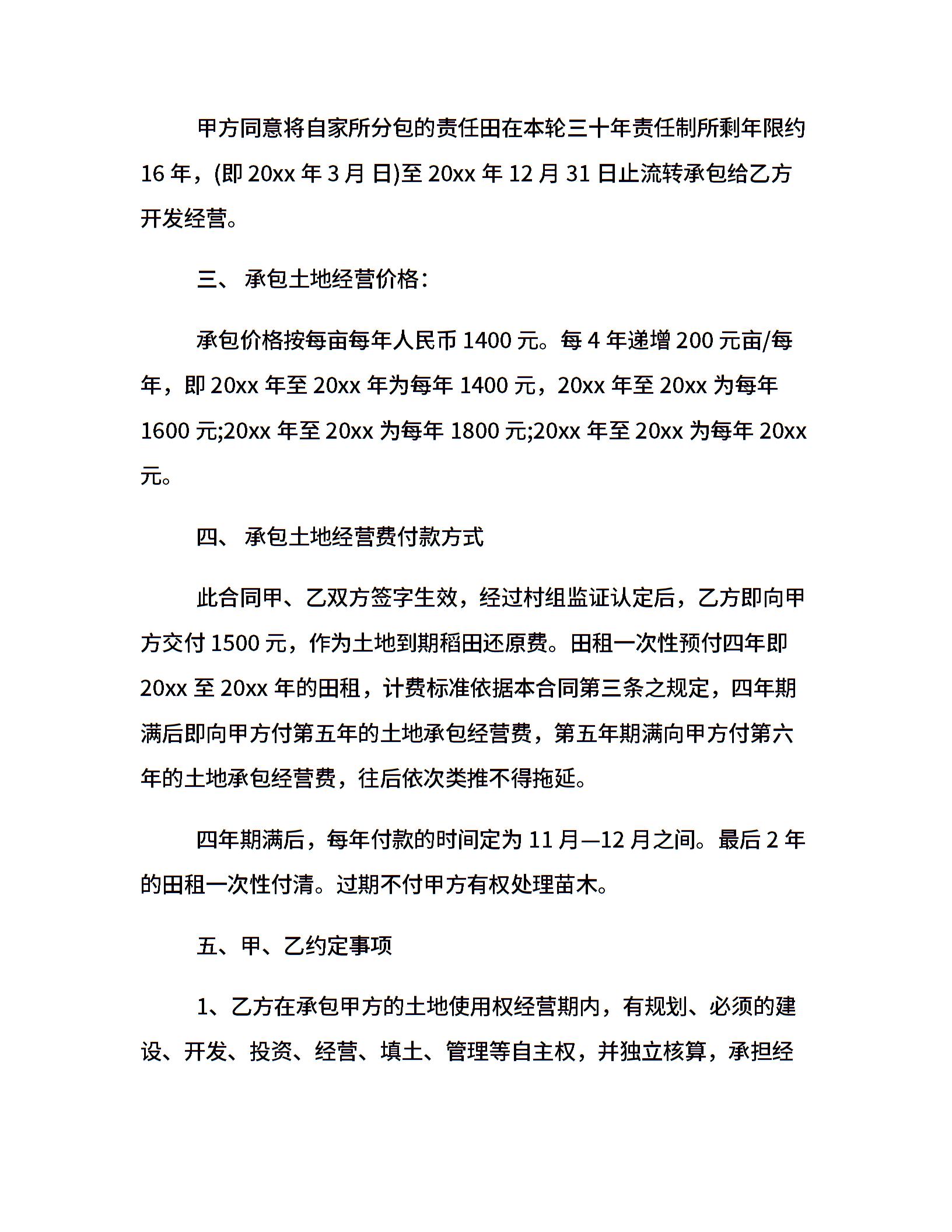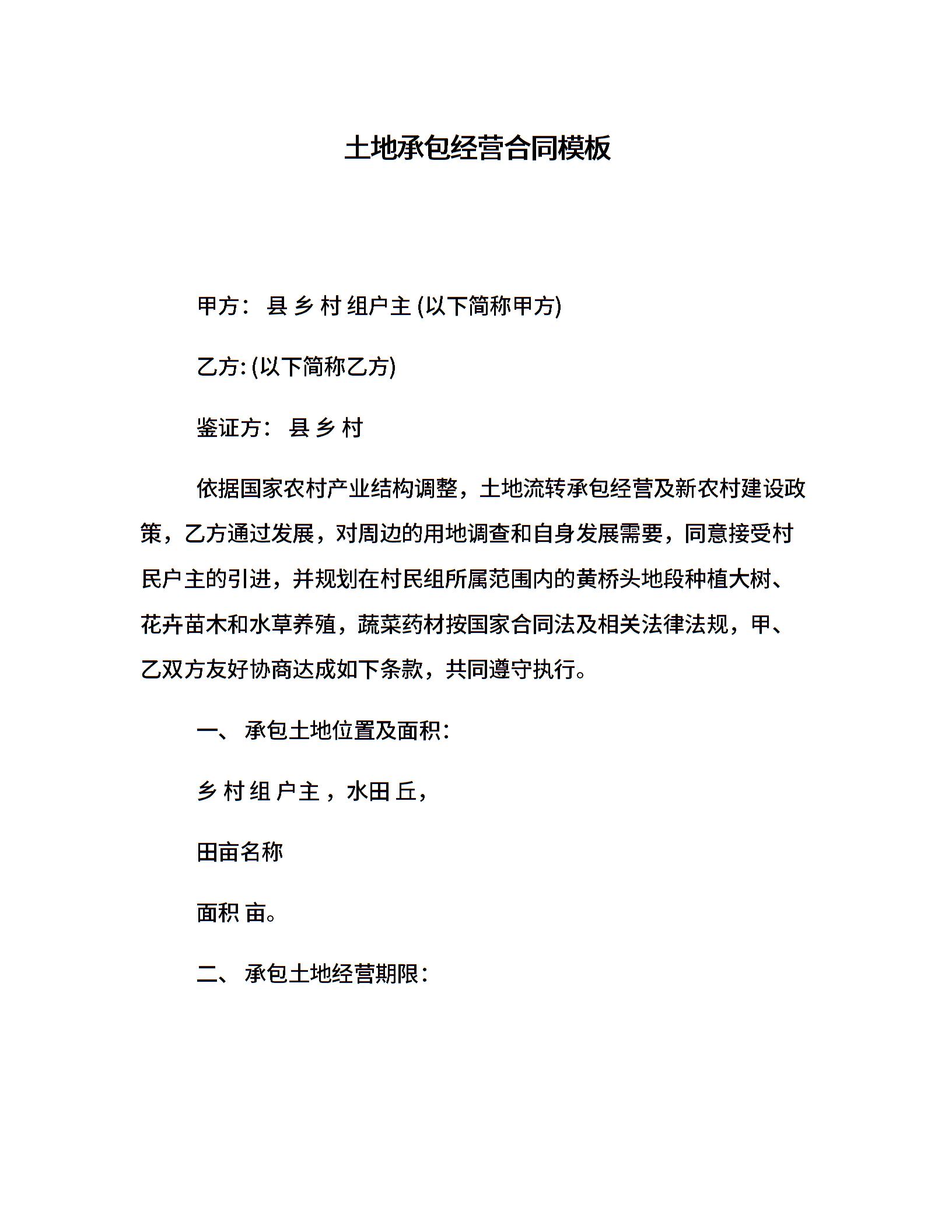 土地承包经营合同模板