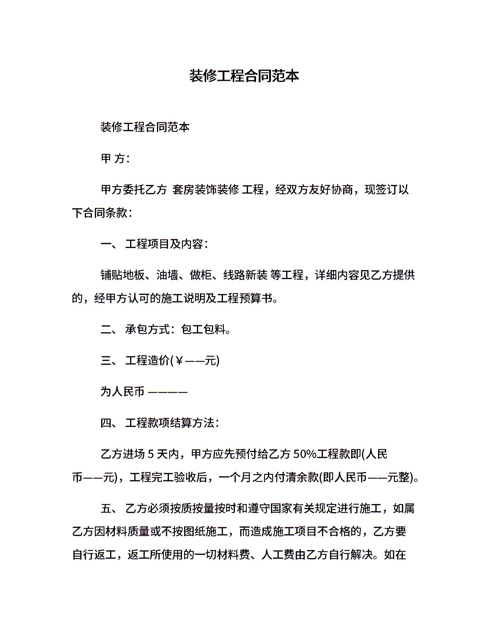 装修工程合同范本