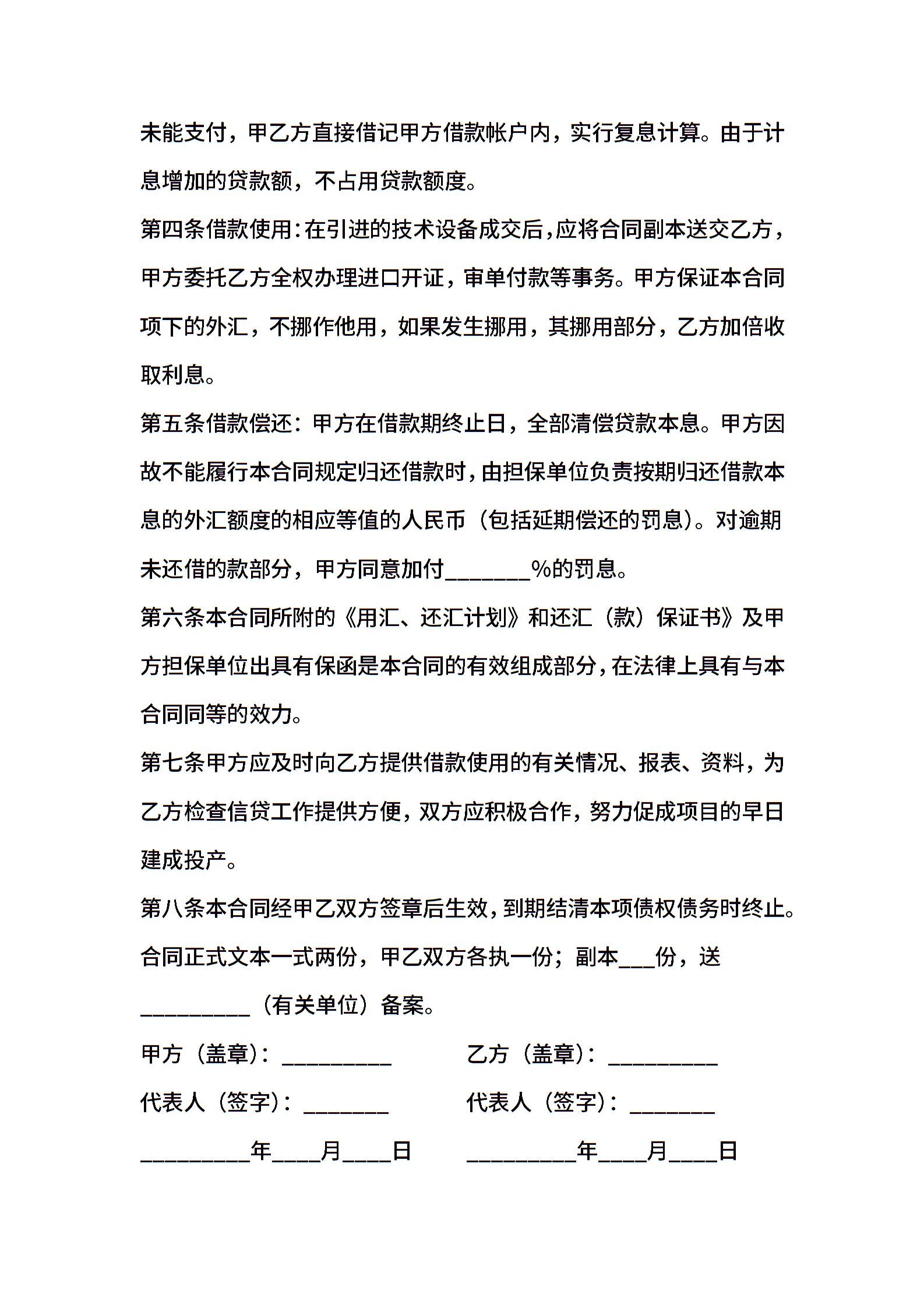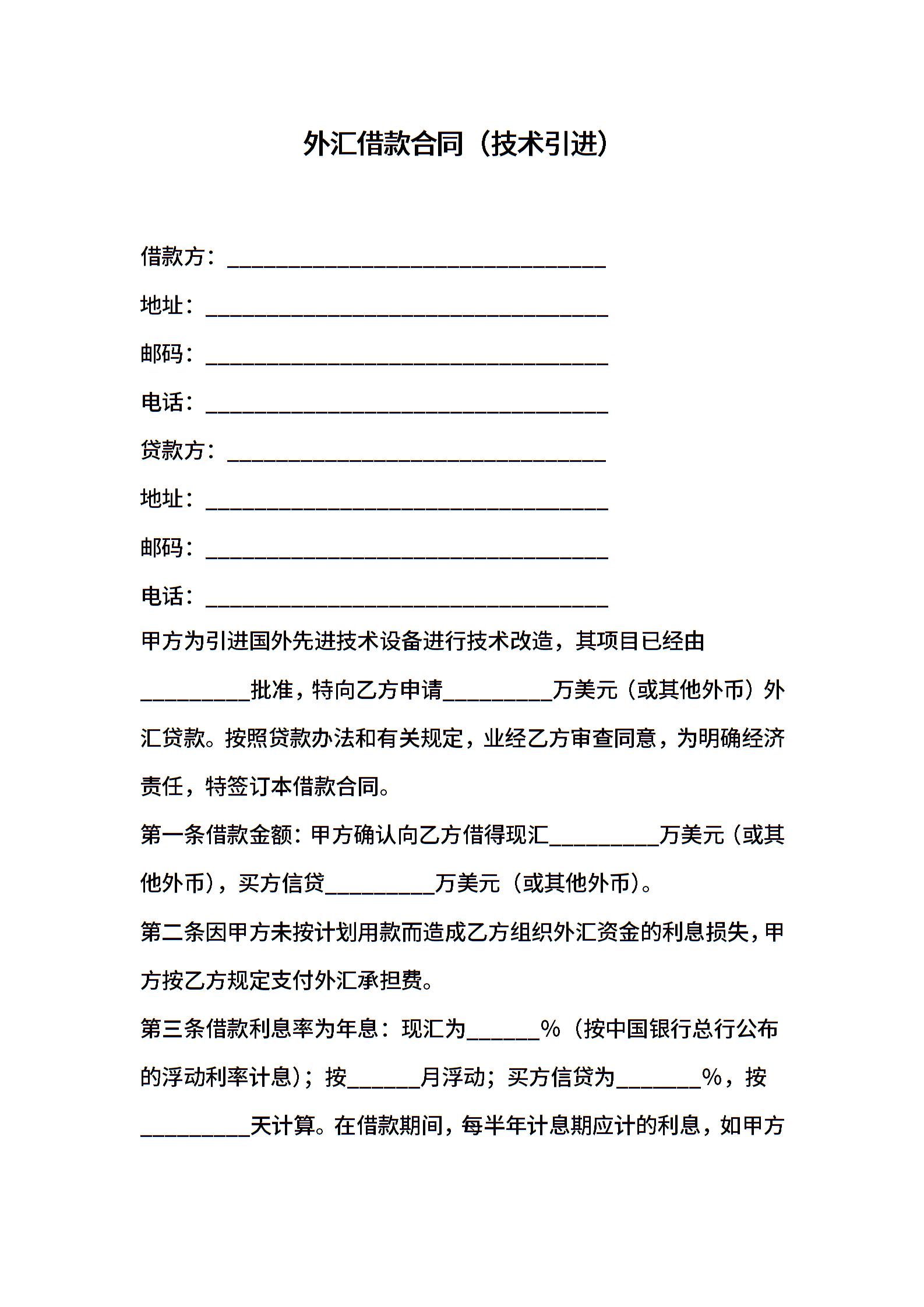 外汇借款合同(技术引进)
