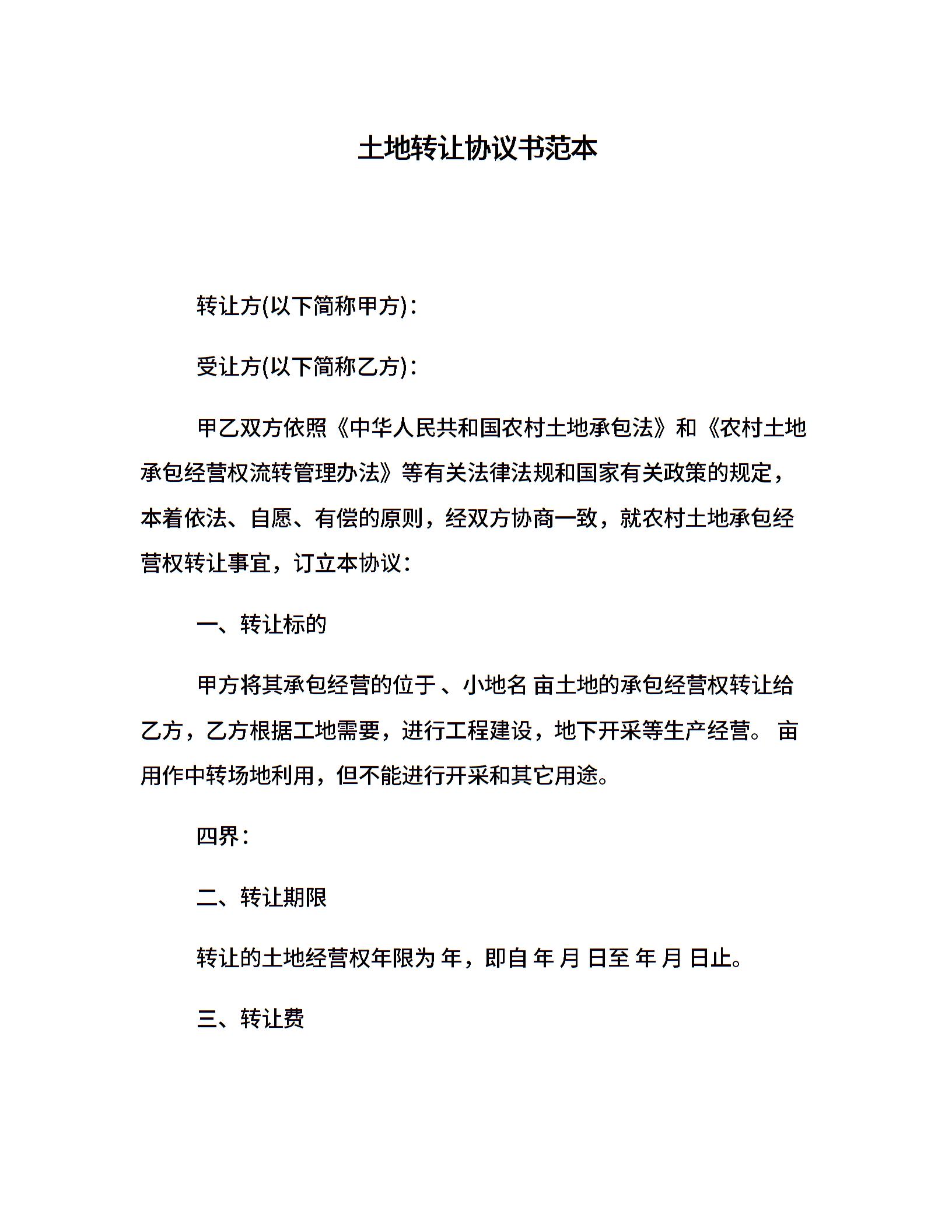 土地转让协议书范本