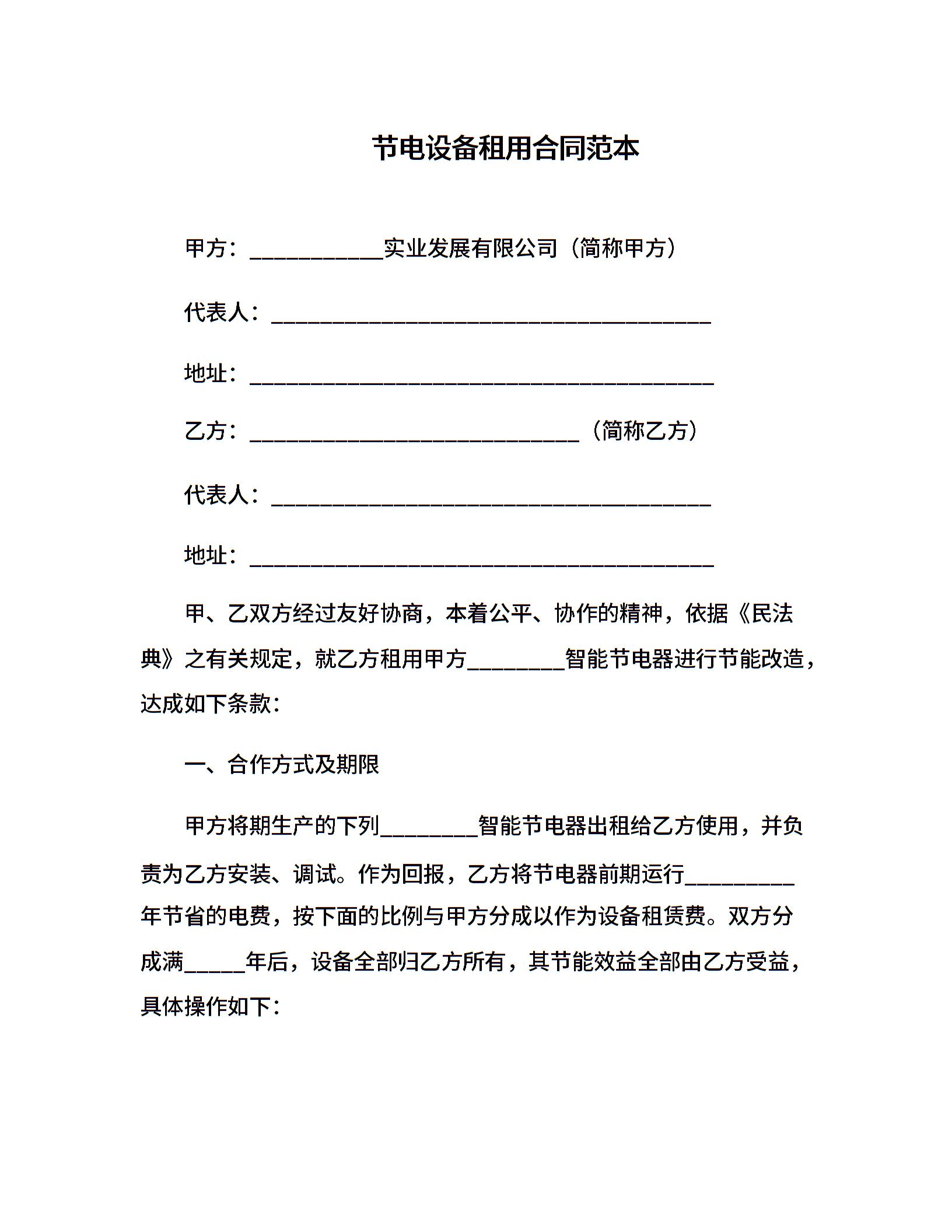 节电设备租用合同范本