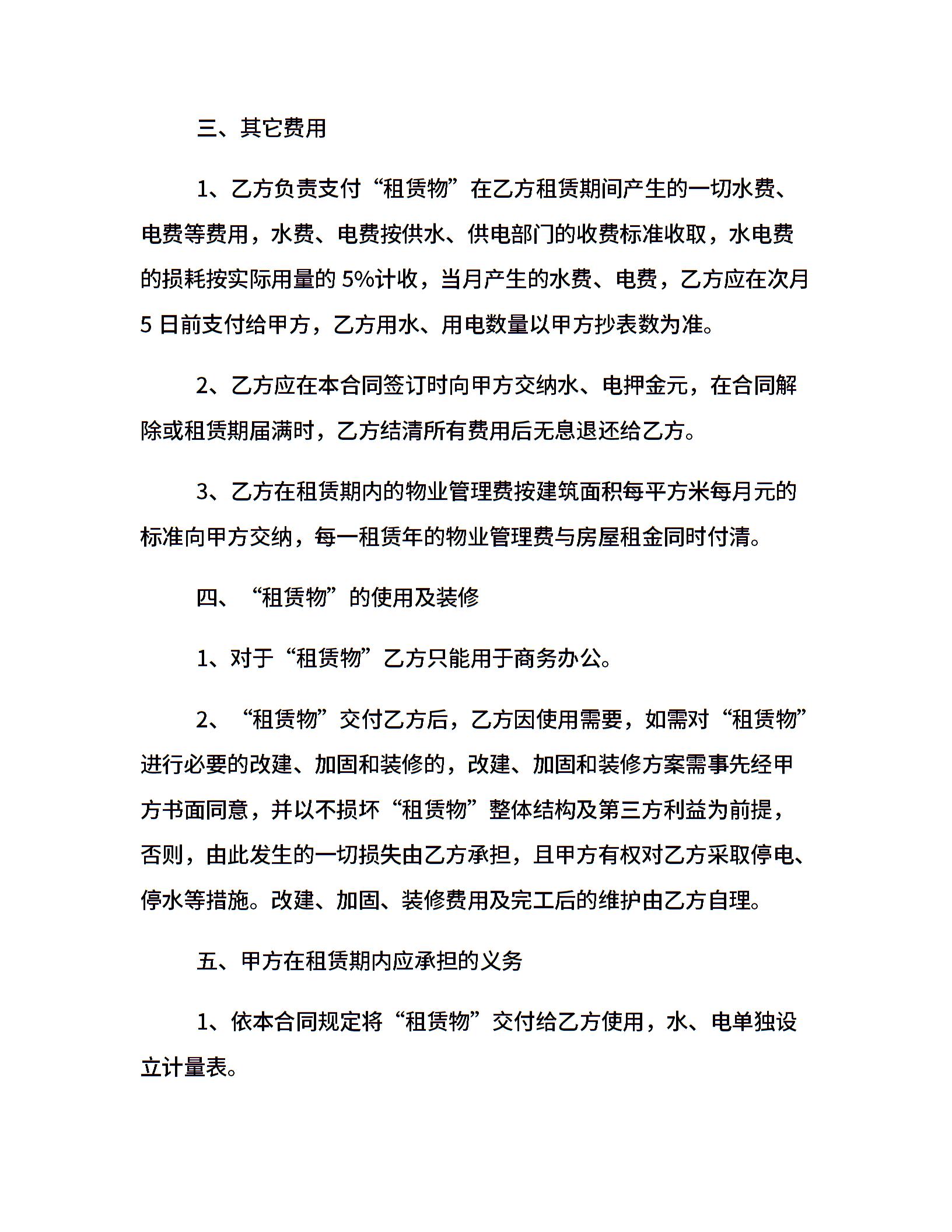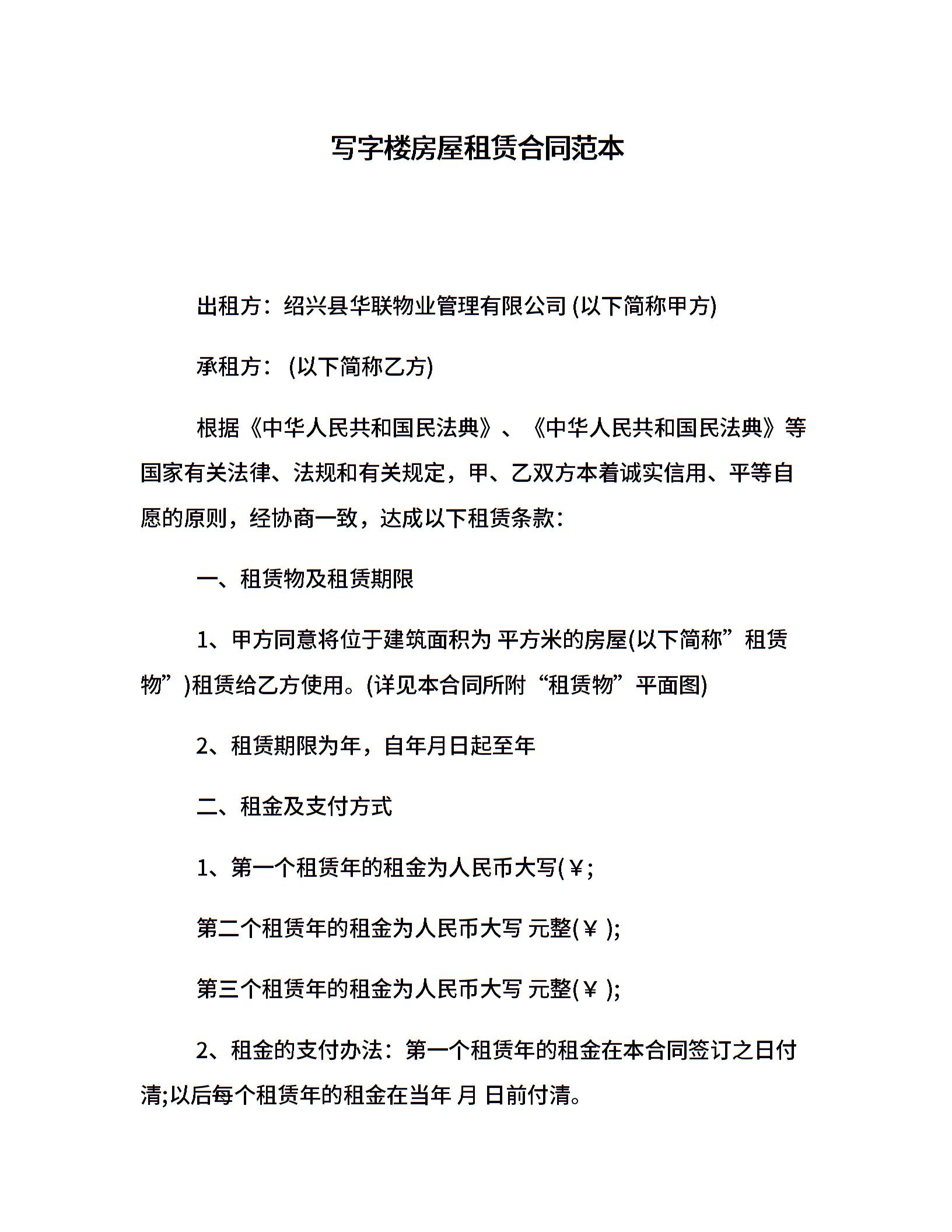 写字楼房屋租赁合同范本