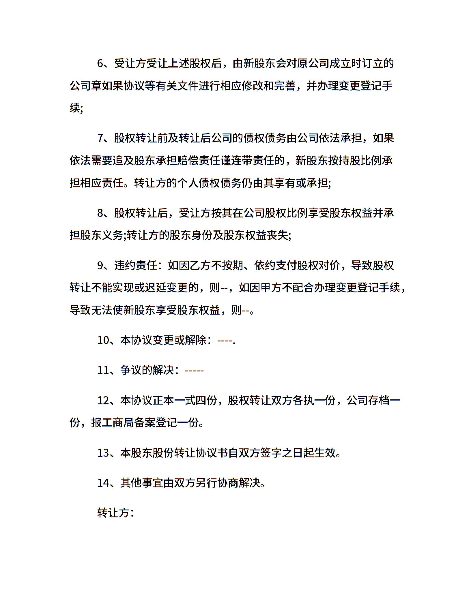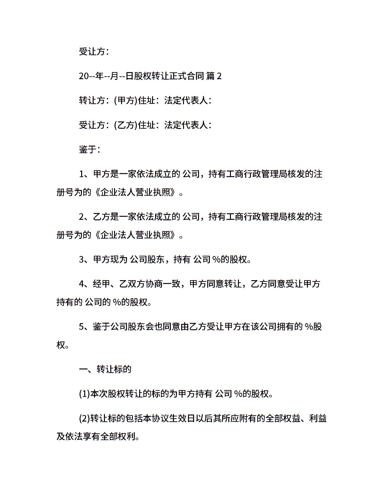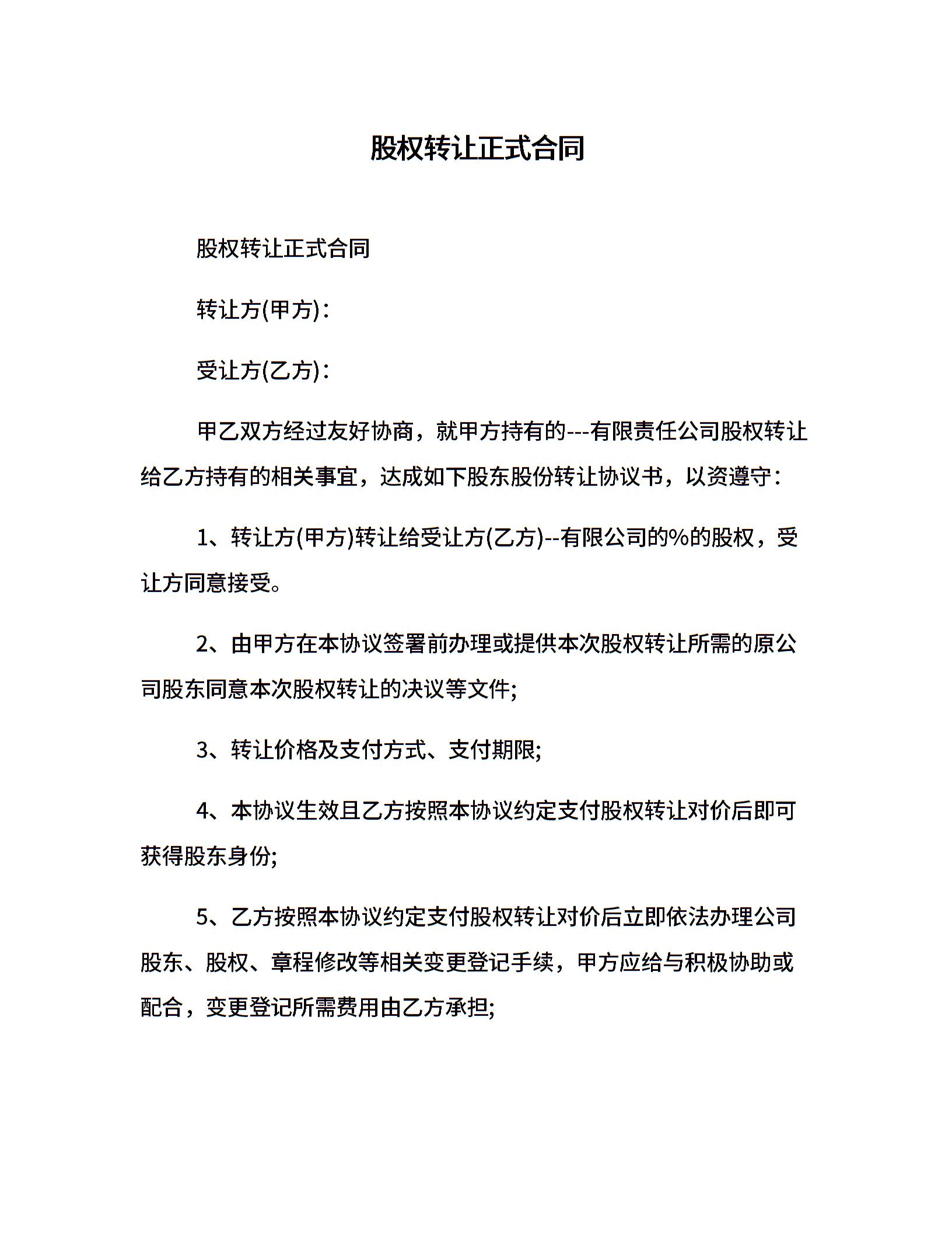 股权转让正式合同