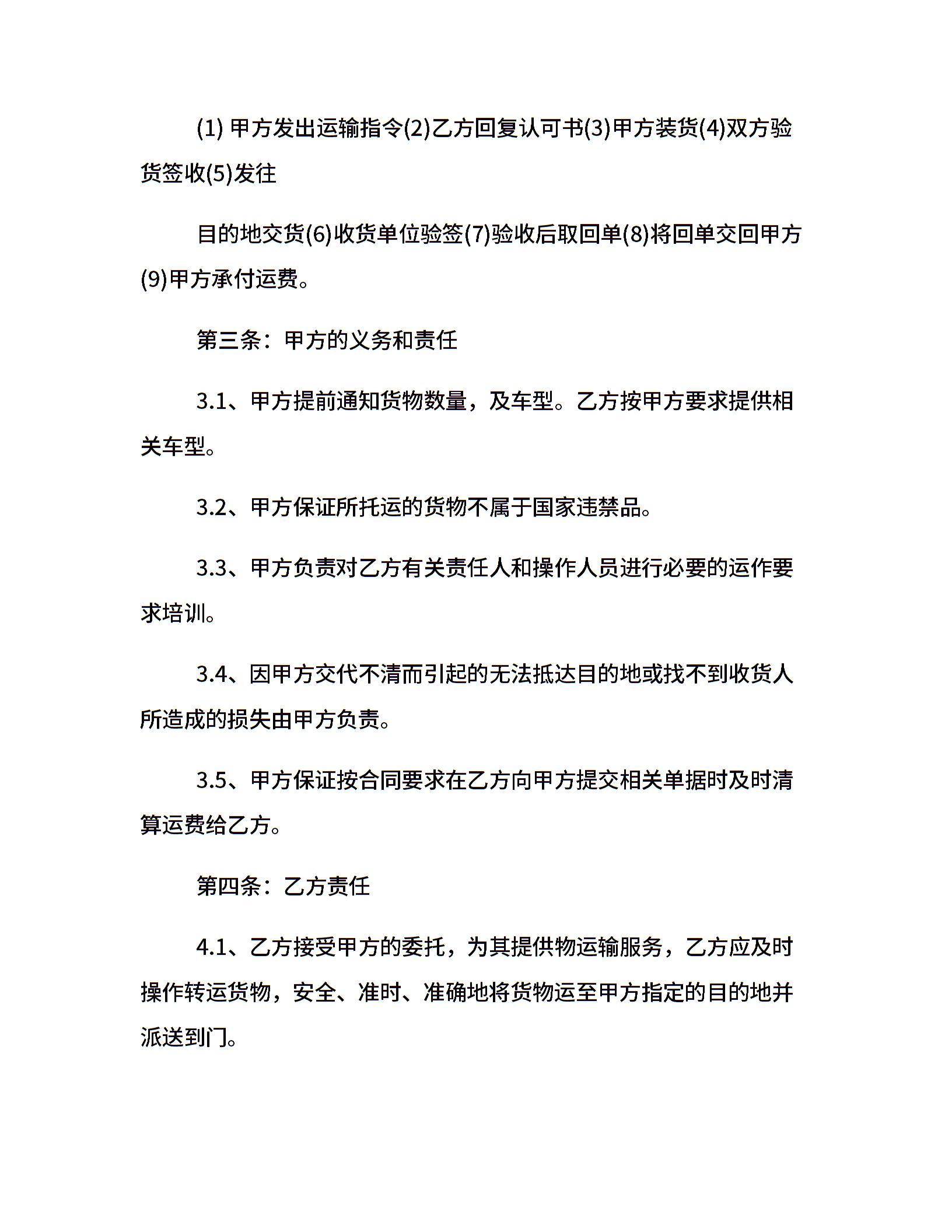 交通运输合同书