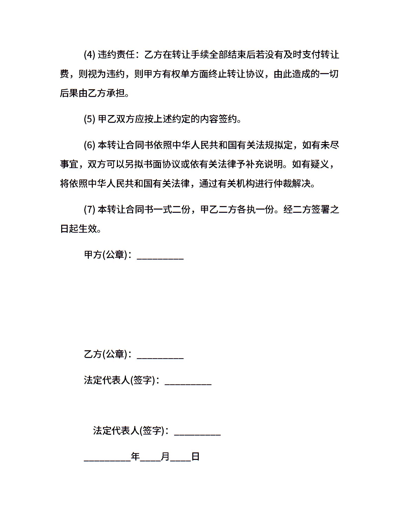 当前位置:量子办公 > 合同模板 > 转让合同 >