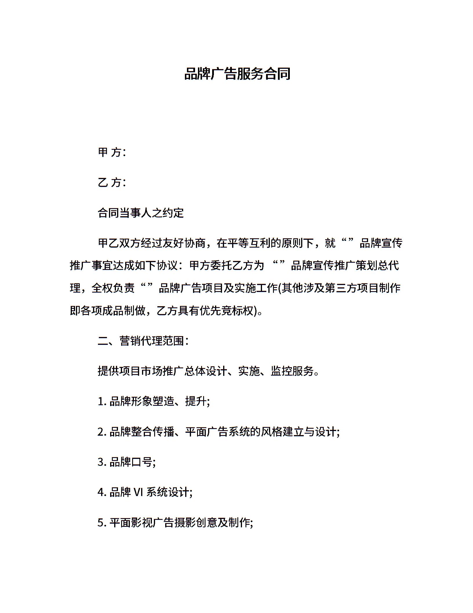品牌广告服务合同