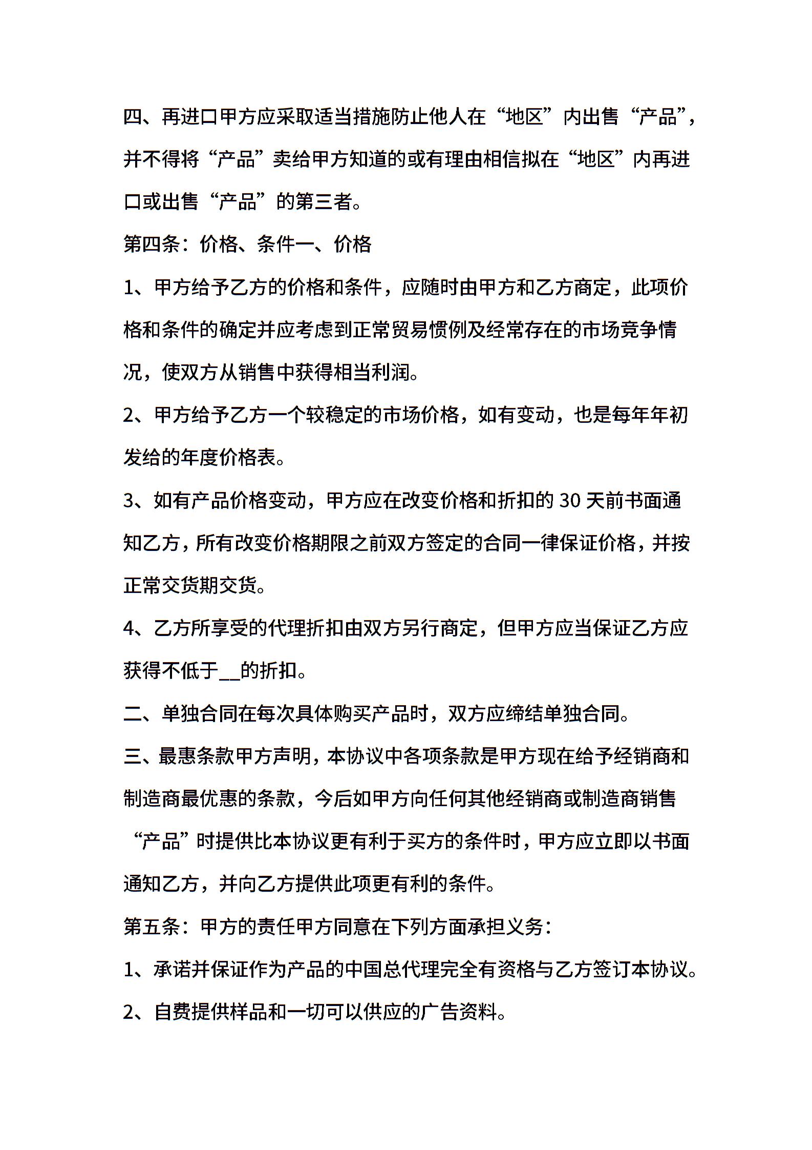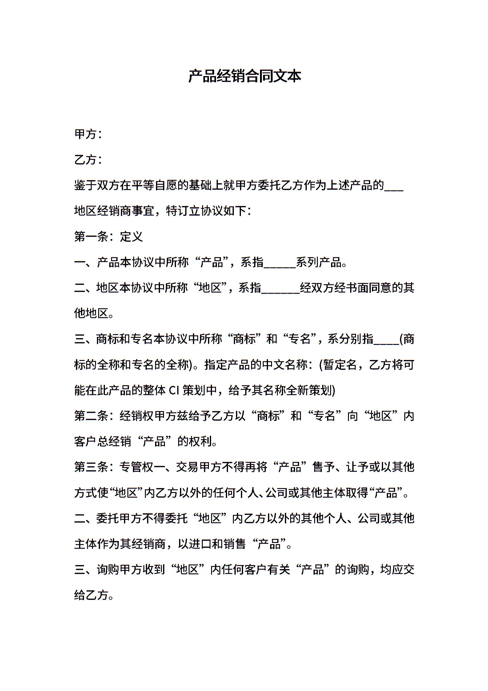 产品经销合同文本