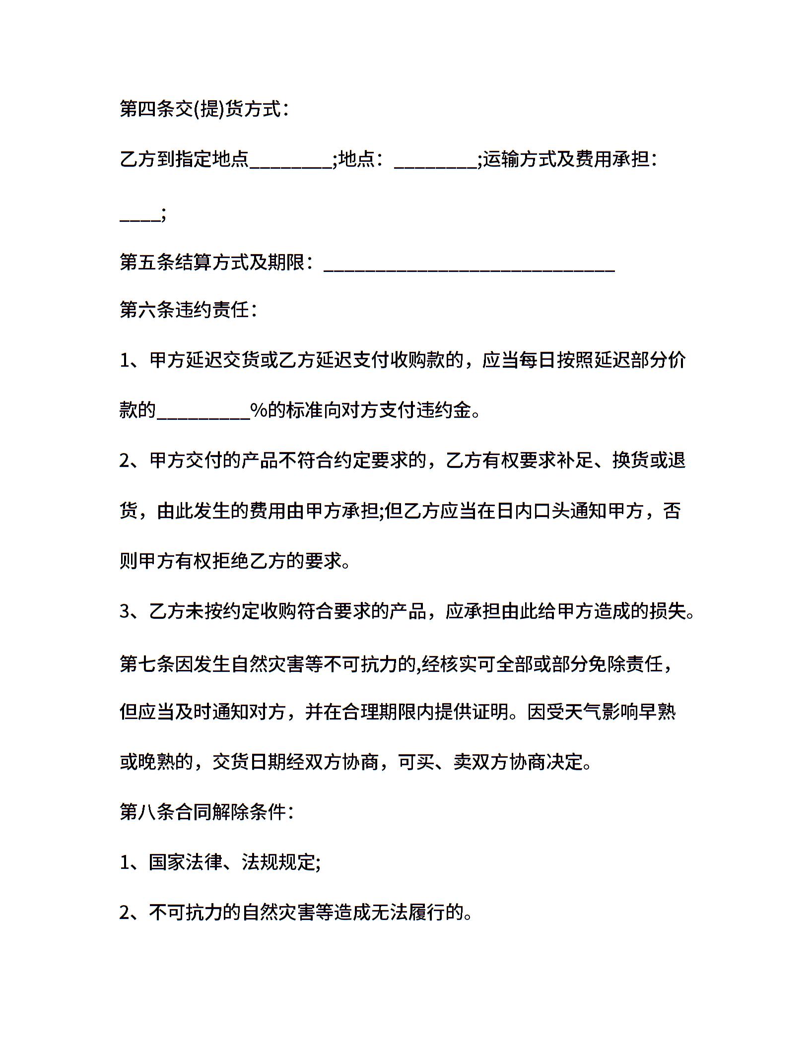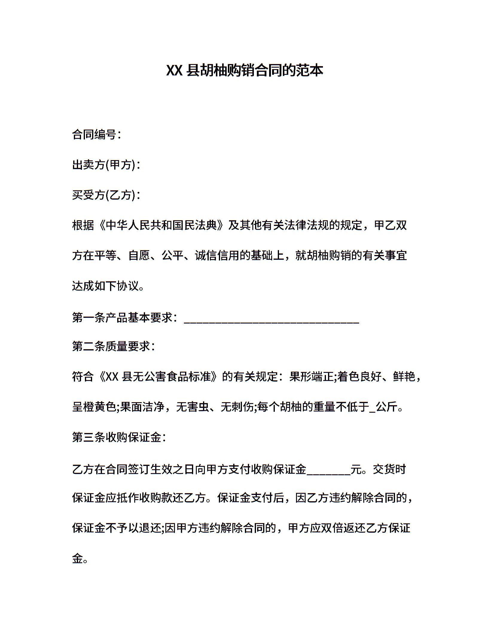 XX县胡柚购销合同的范本