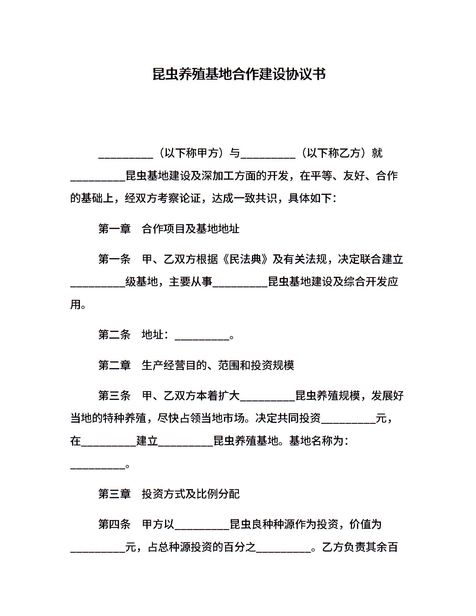 昆虫养殖基地合作建设协议书