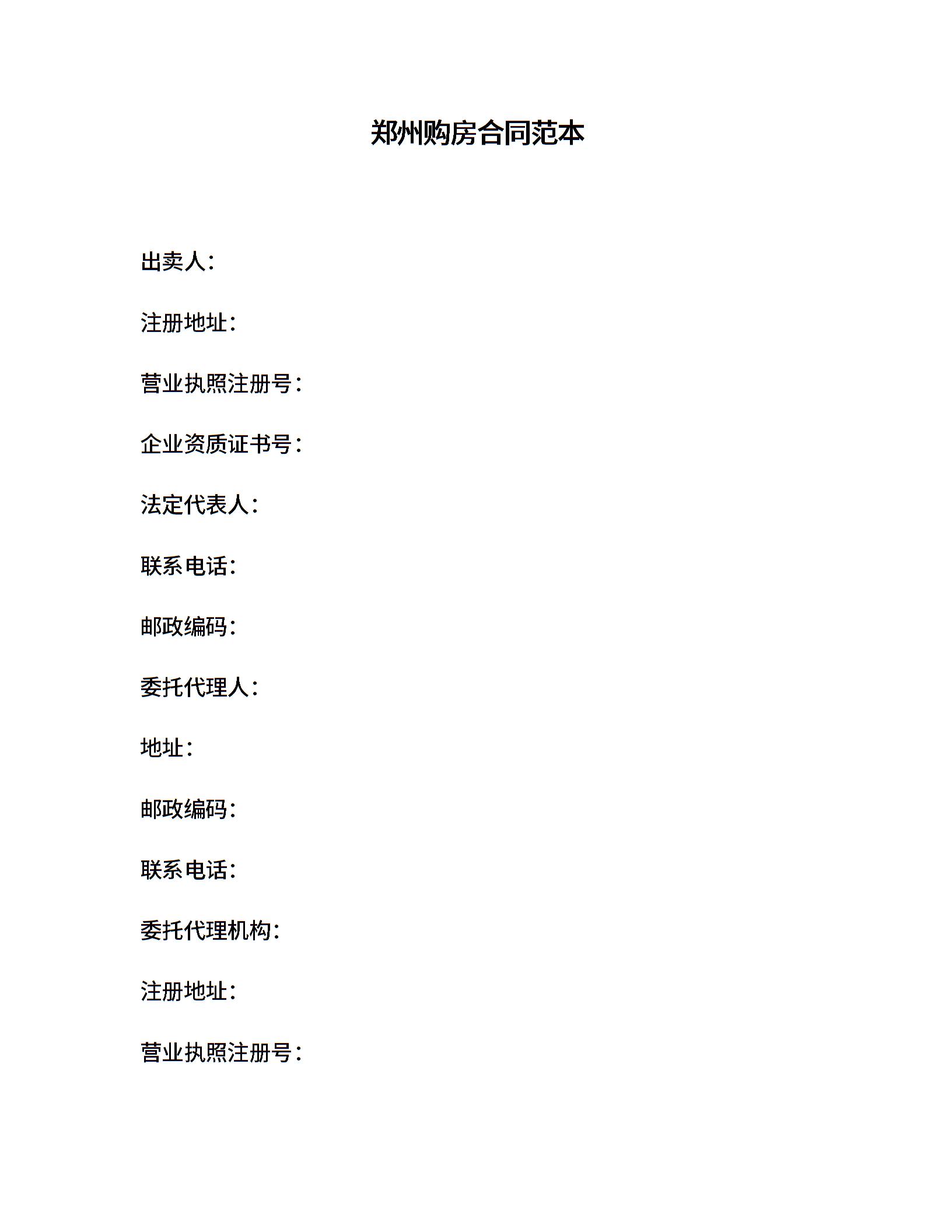 郑州购房合同范本