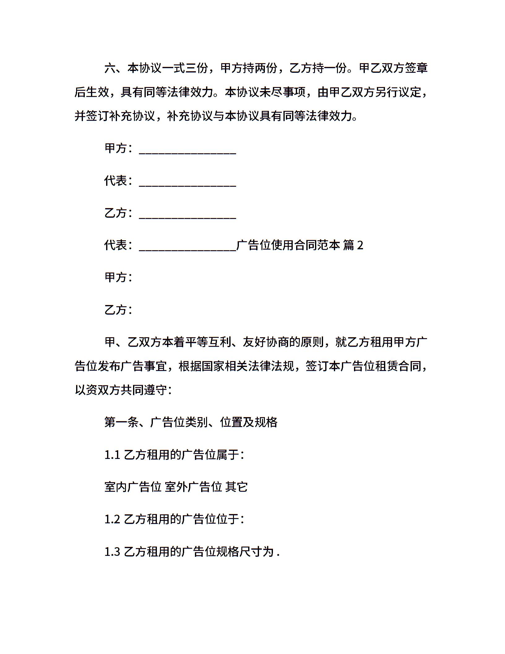 广告位使用合同范本