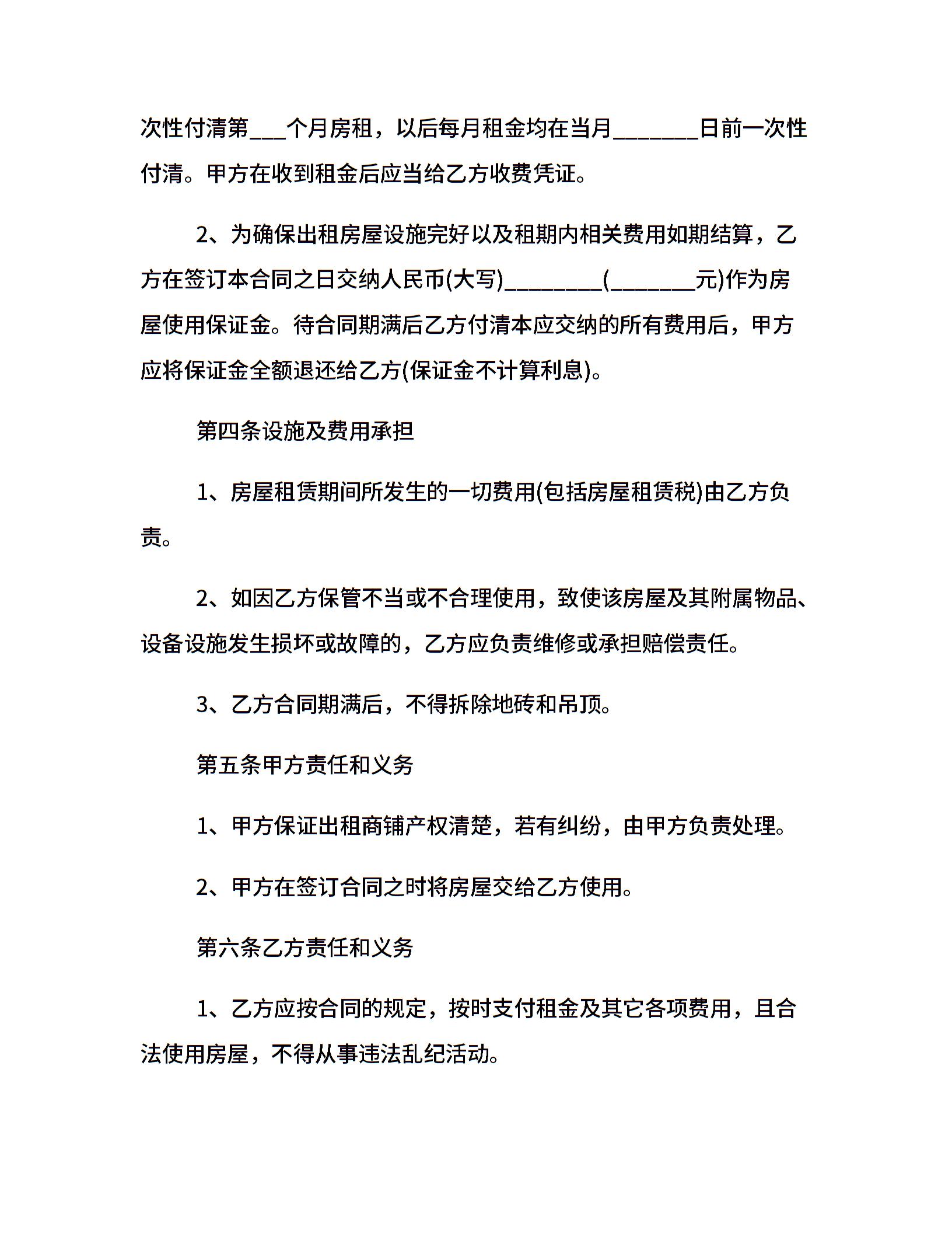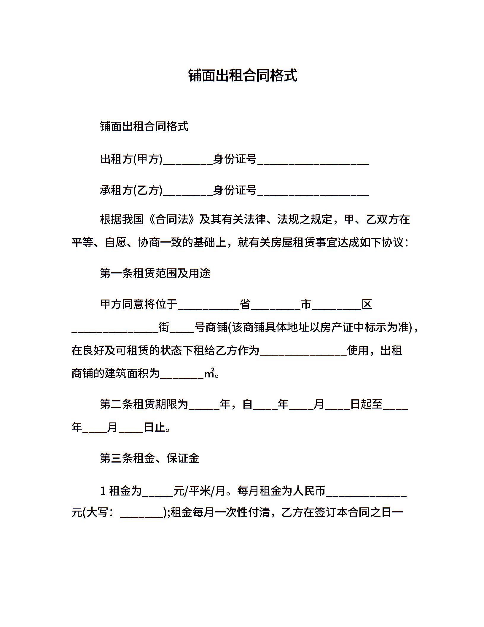 铺面出租合同格式