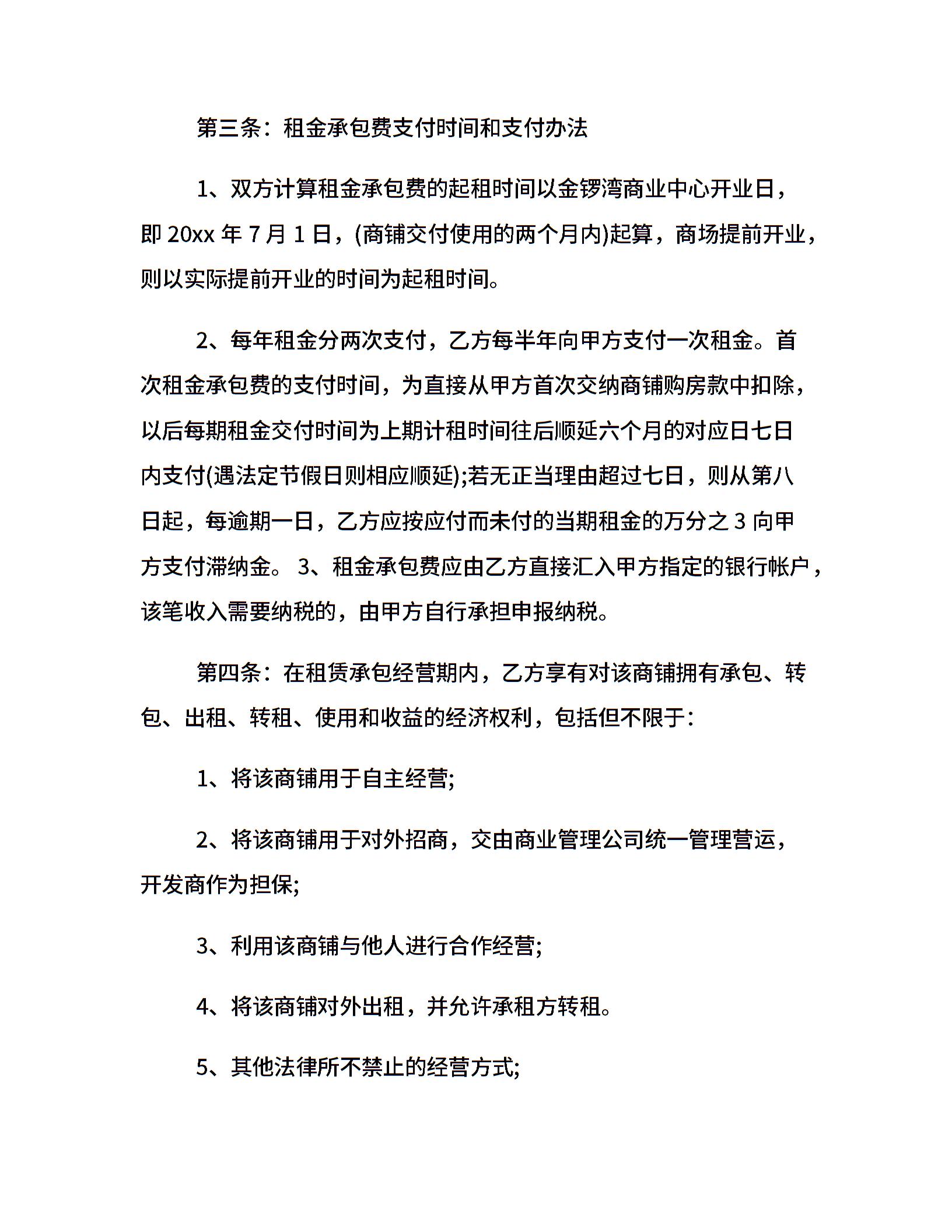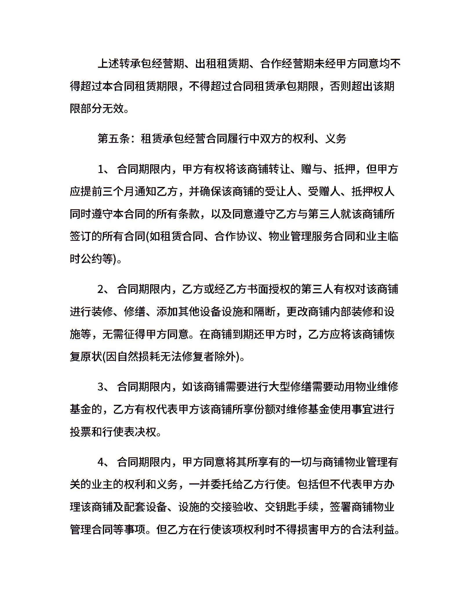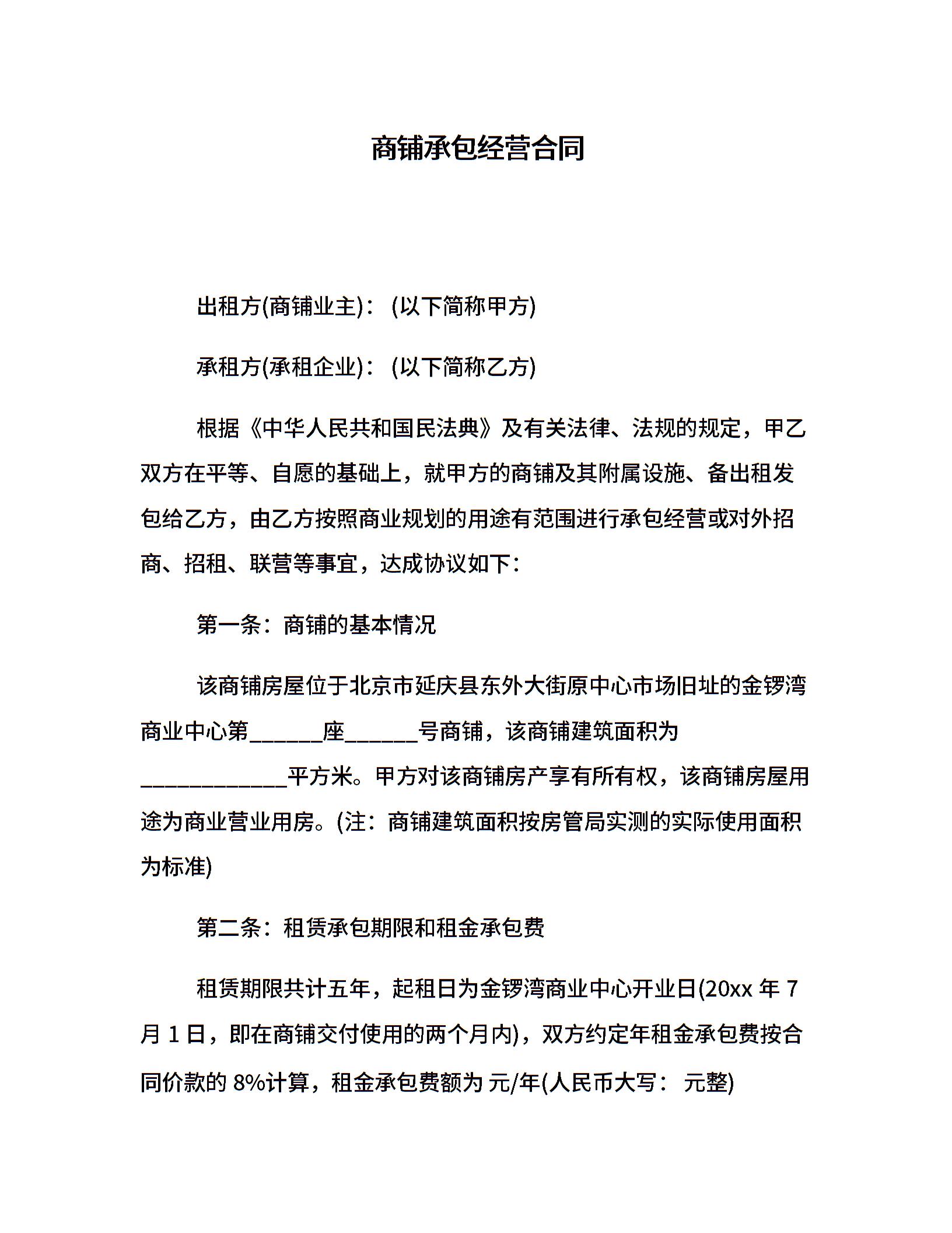 商铺承包经营合同