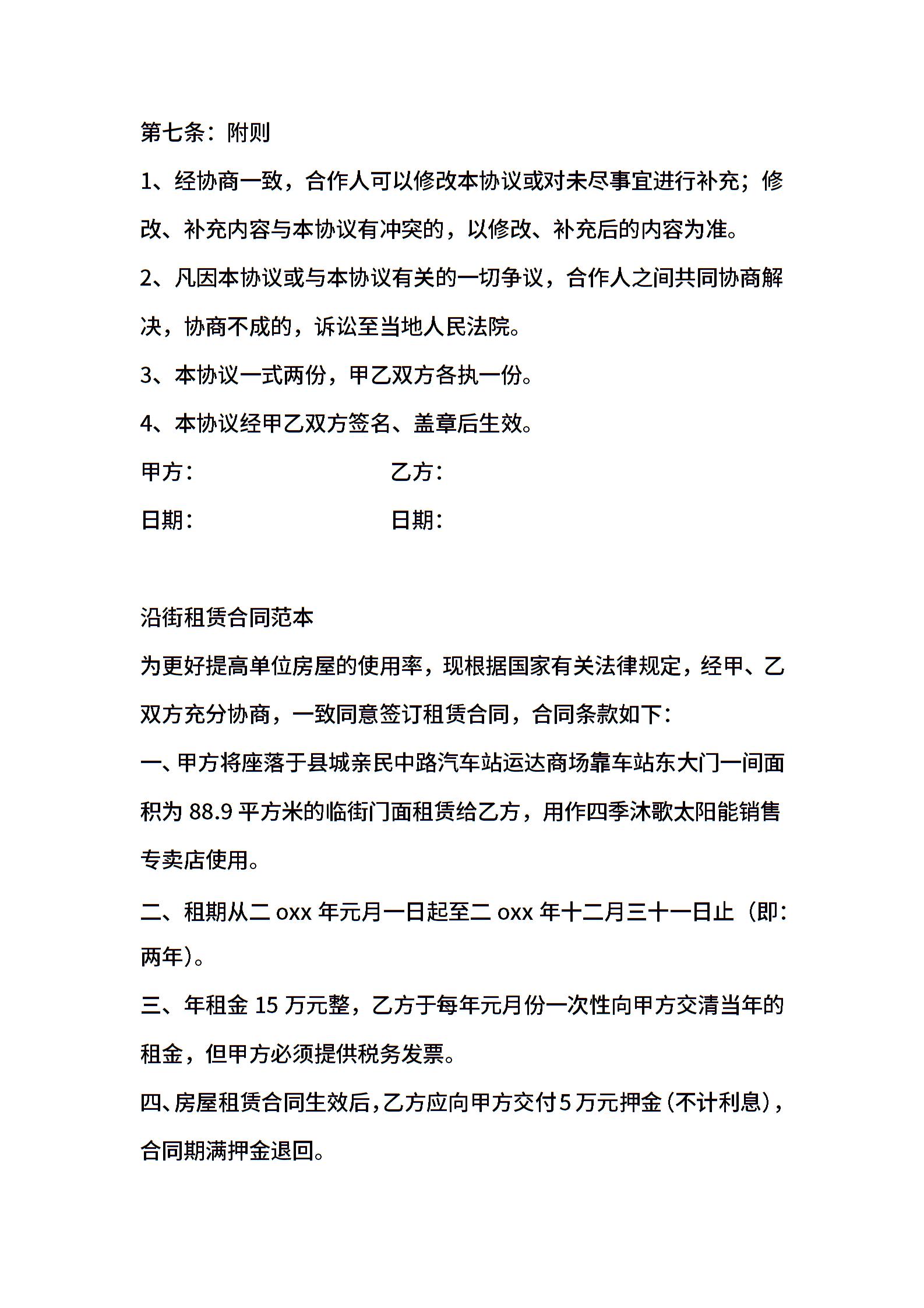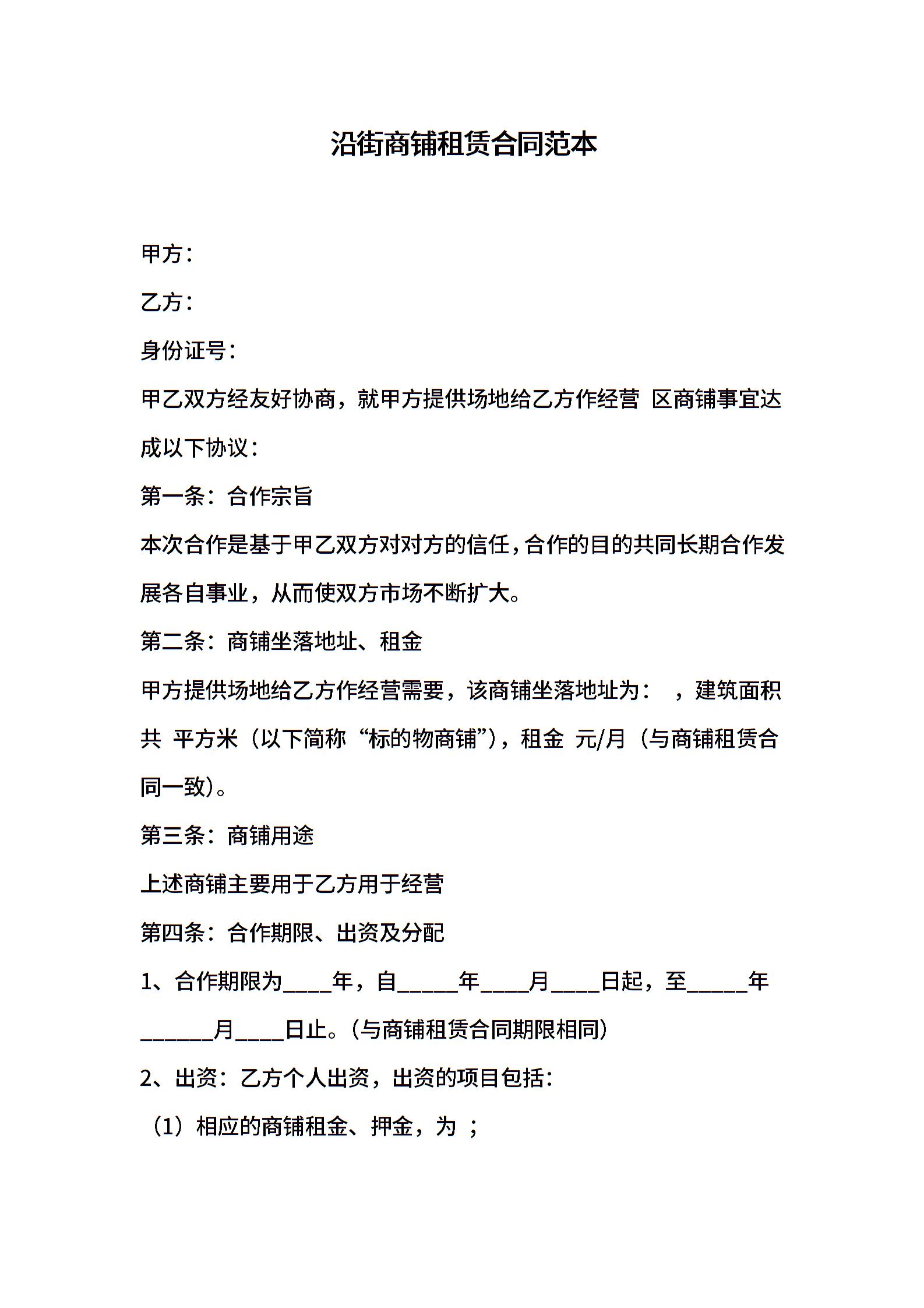 沿街商铺租赁合同范本