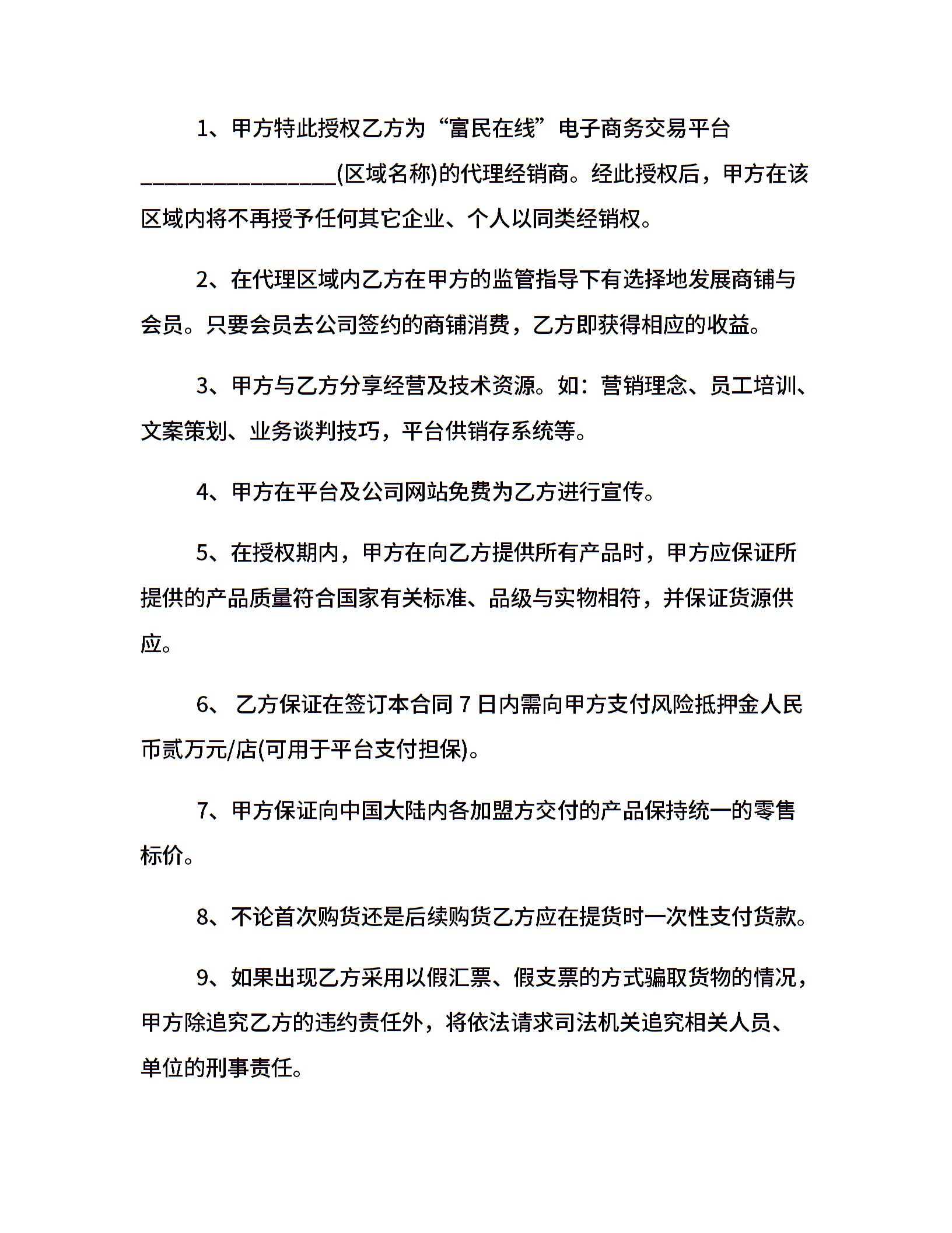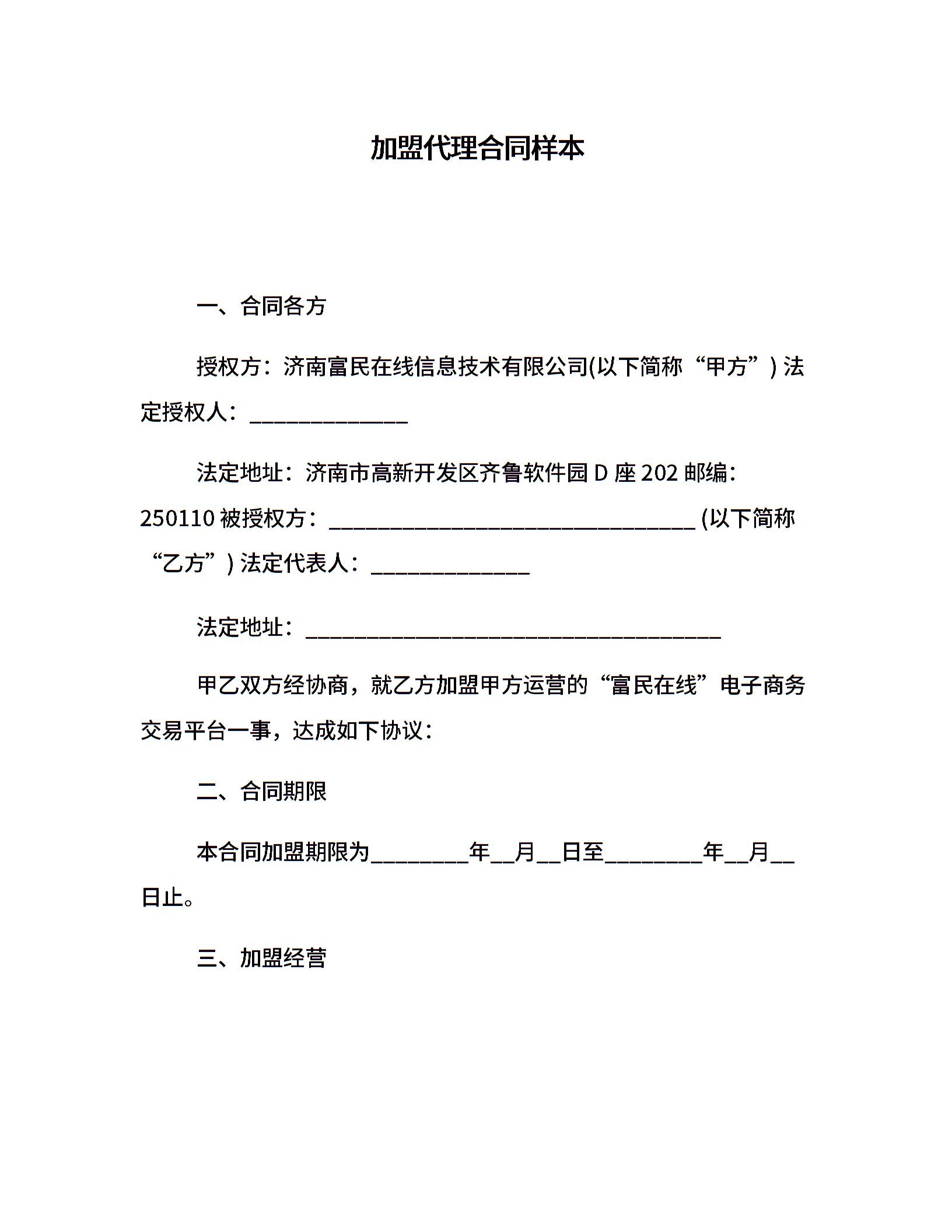 加盟代理合同样本