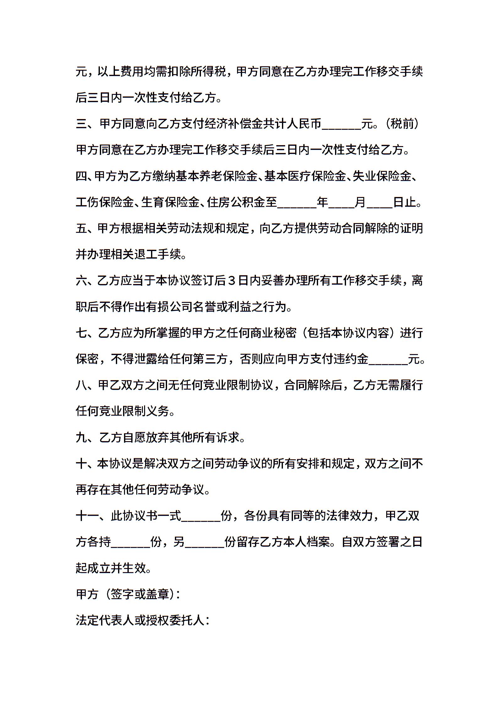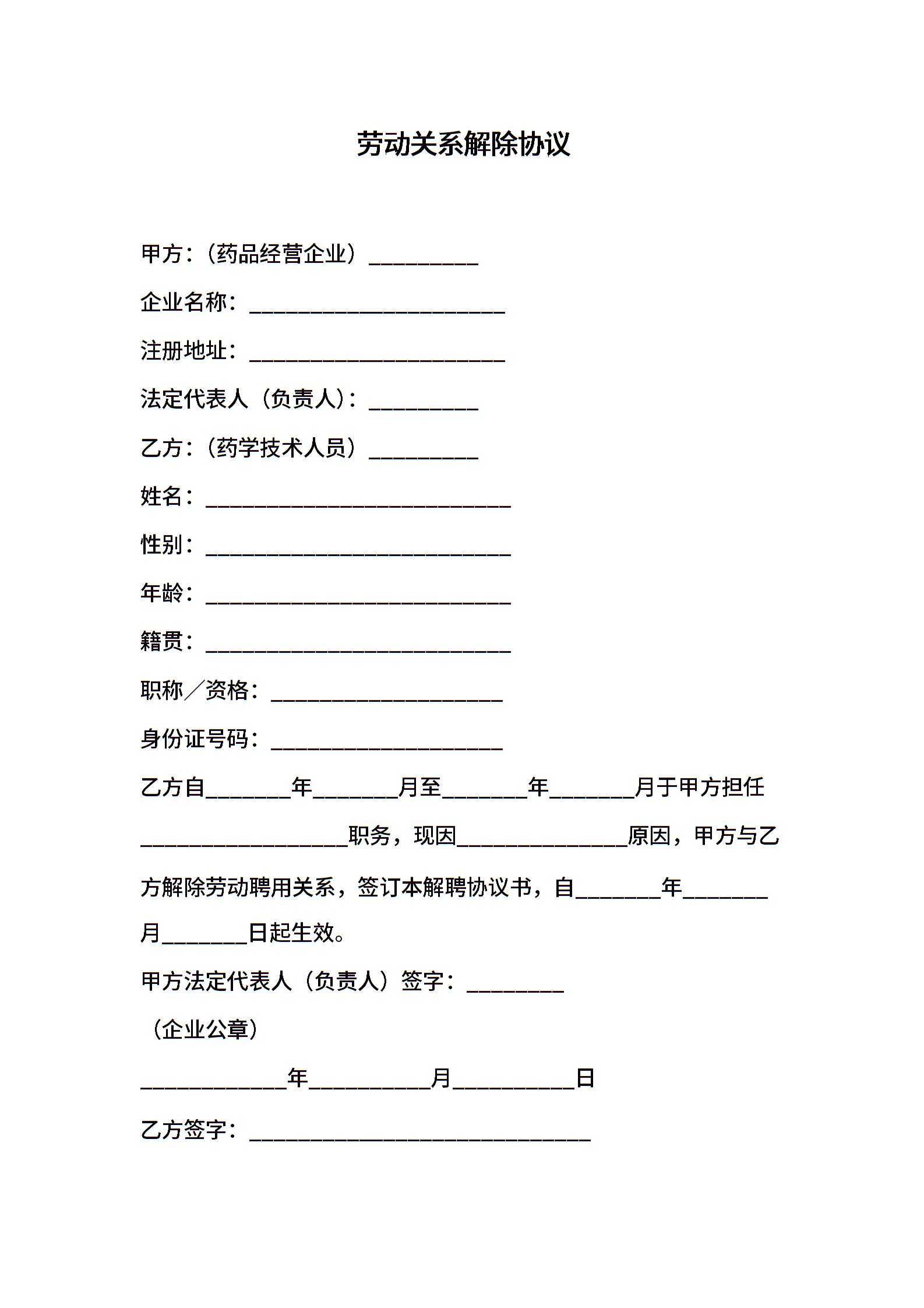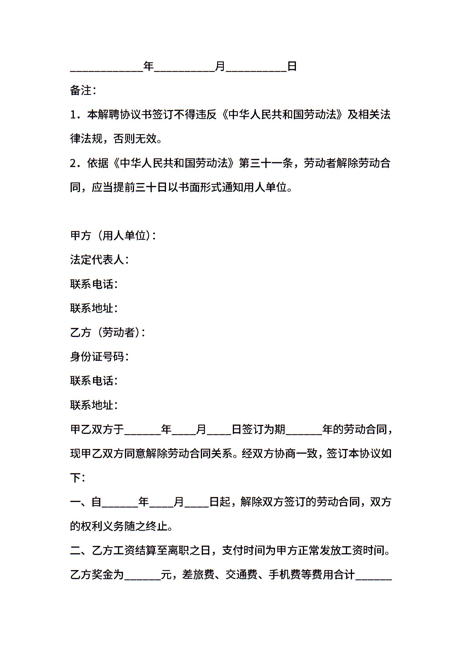 劳动关系解除协议 (2)