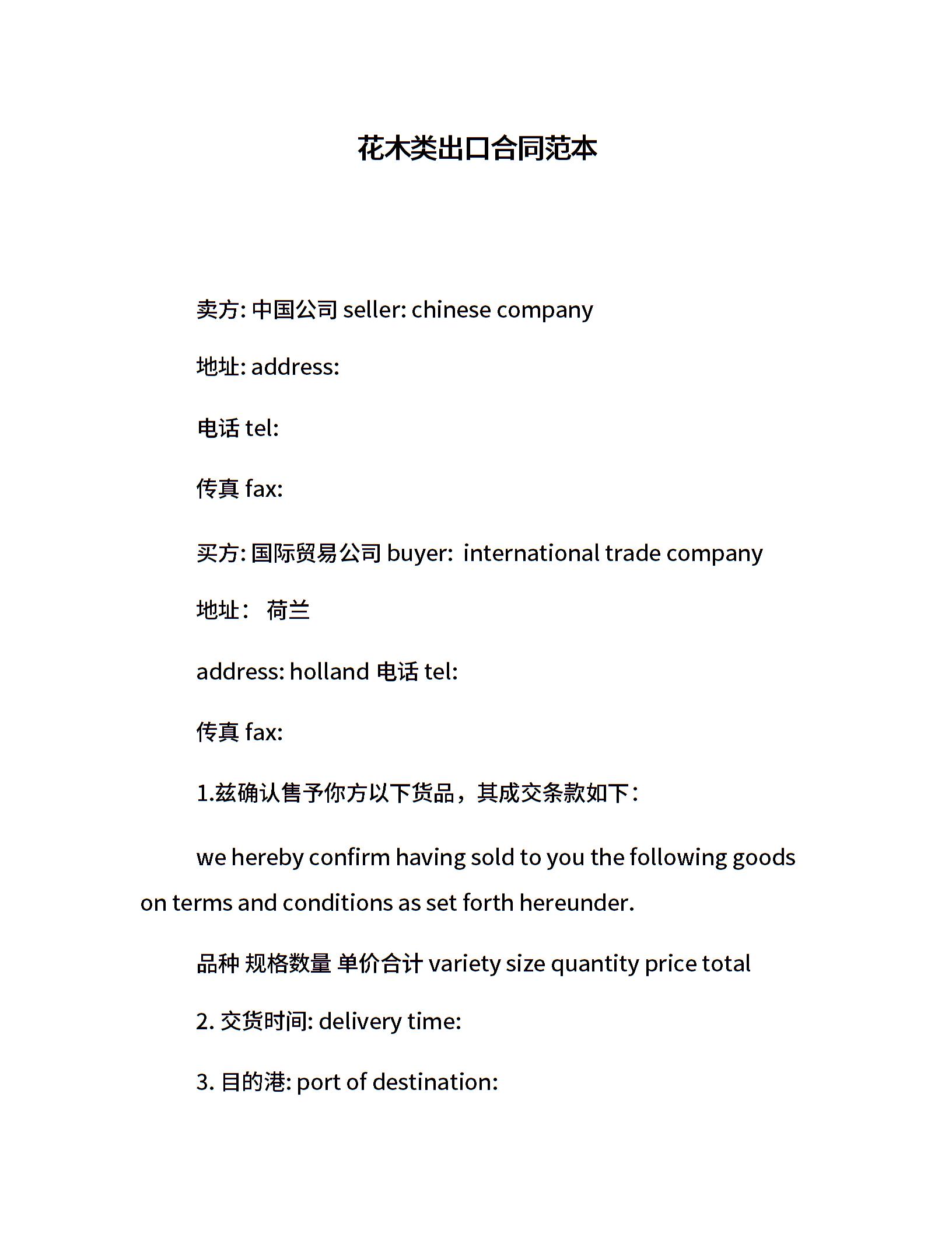 花木类出口合同范本
