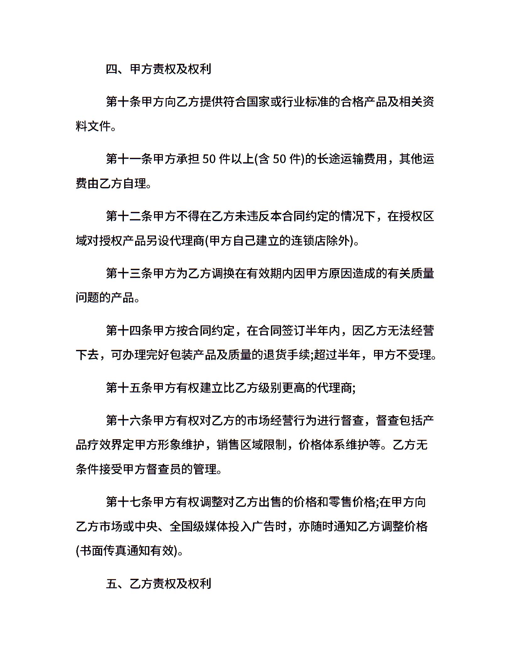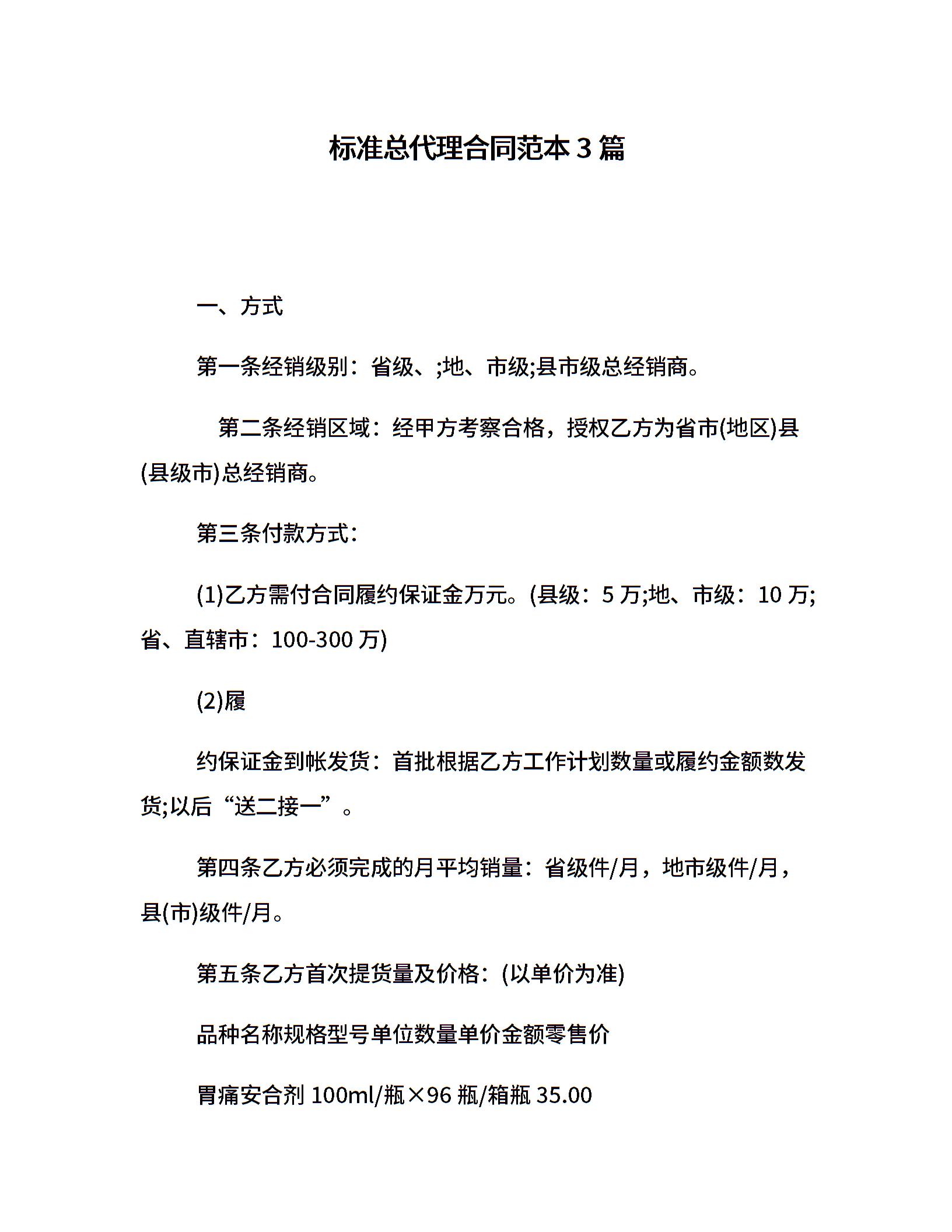标准总代理合同范本3篇