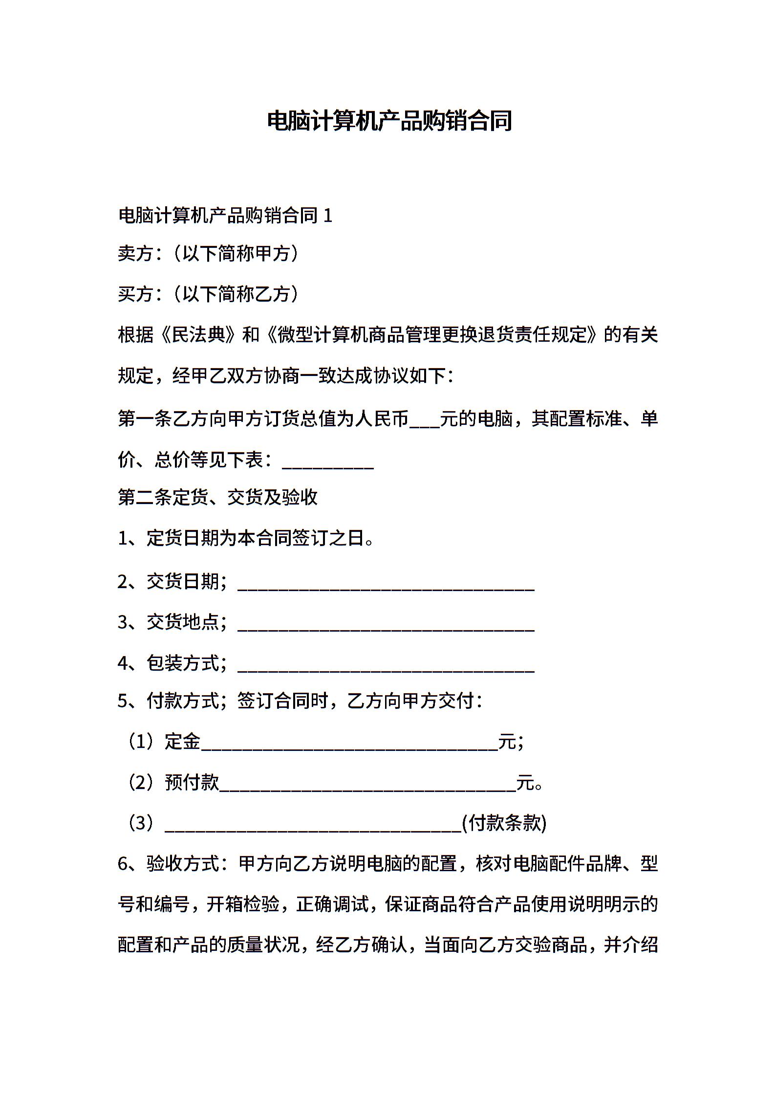 电脑计算机产品购销合同