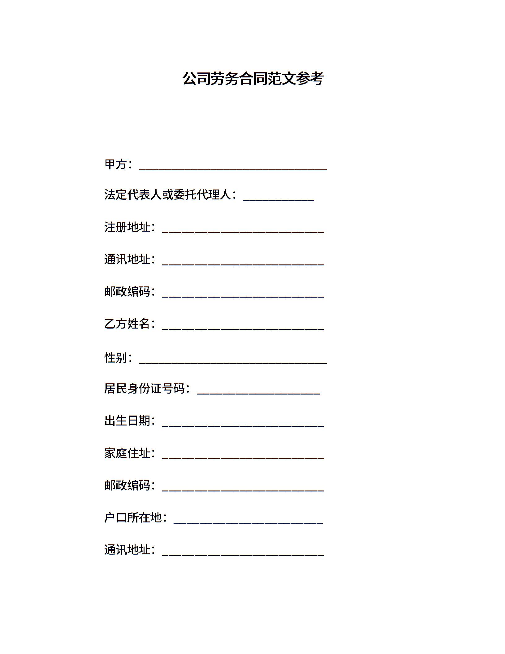 公司劳务合同范文参考