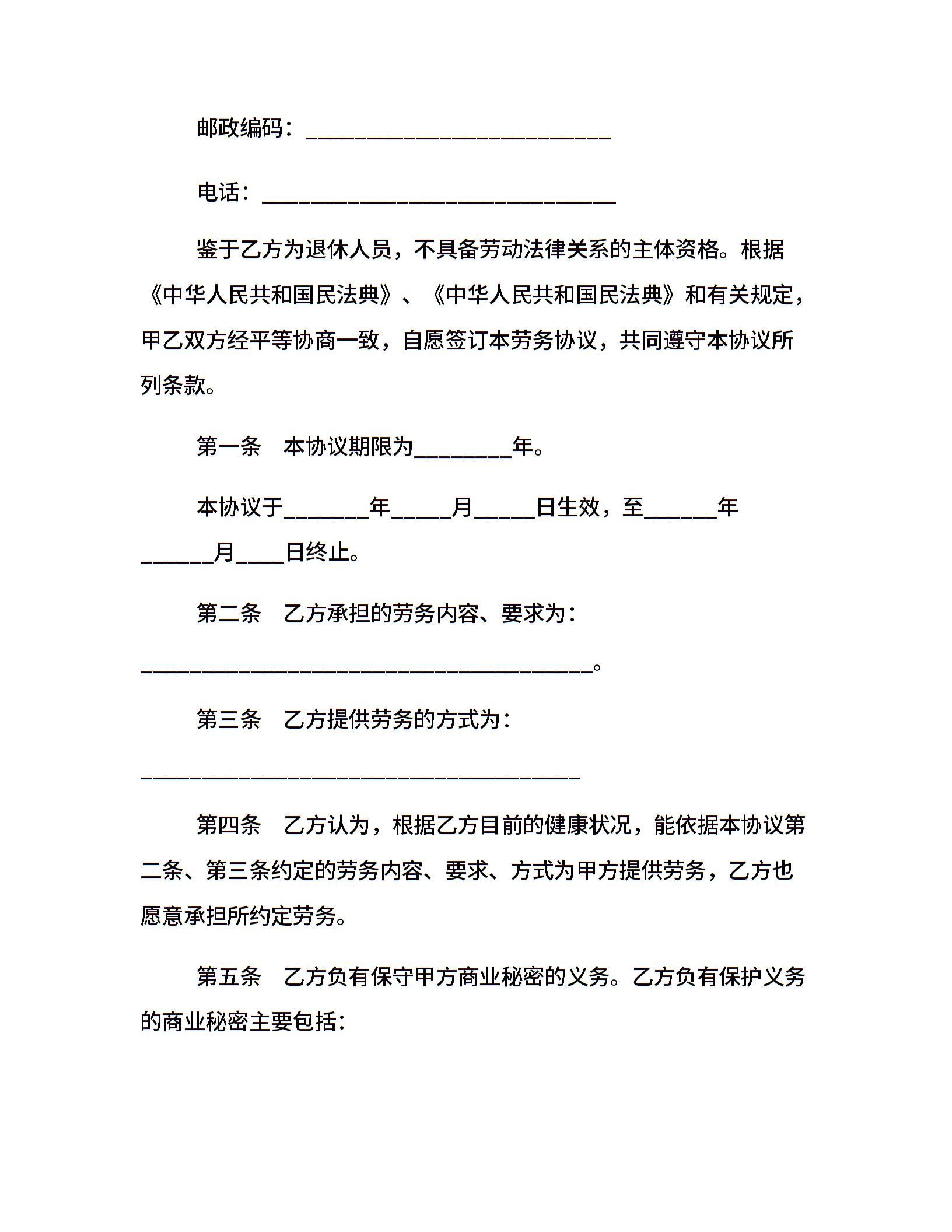 当前位置:量子办公 > 合同模板 > 劳务合同 >