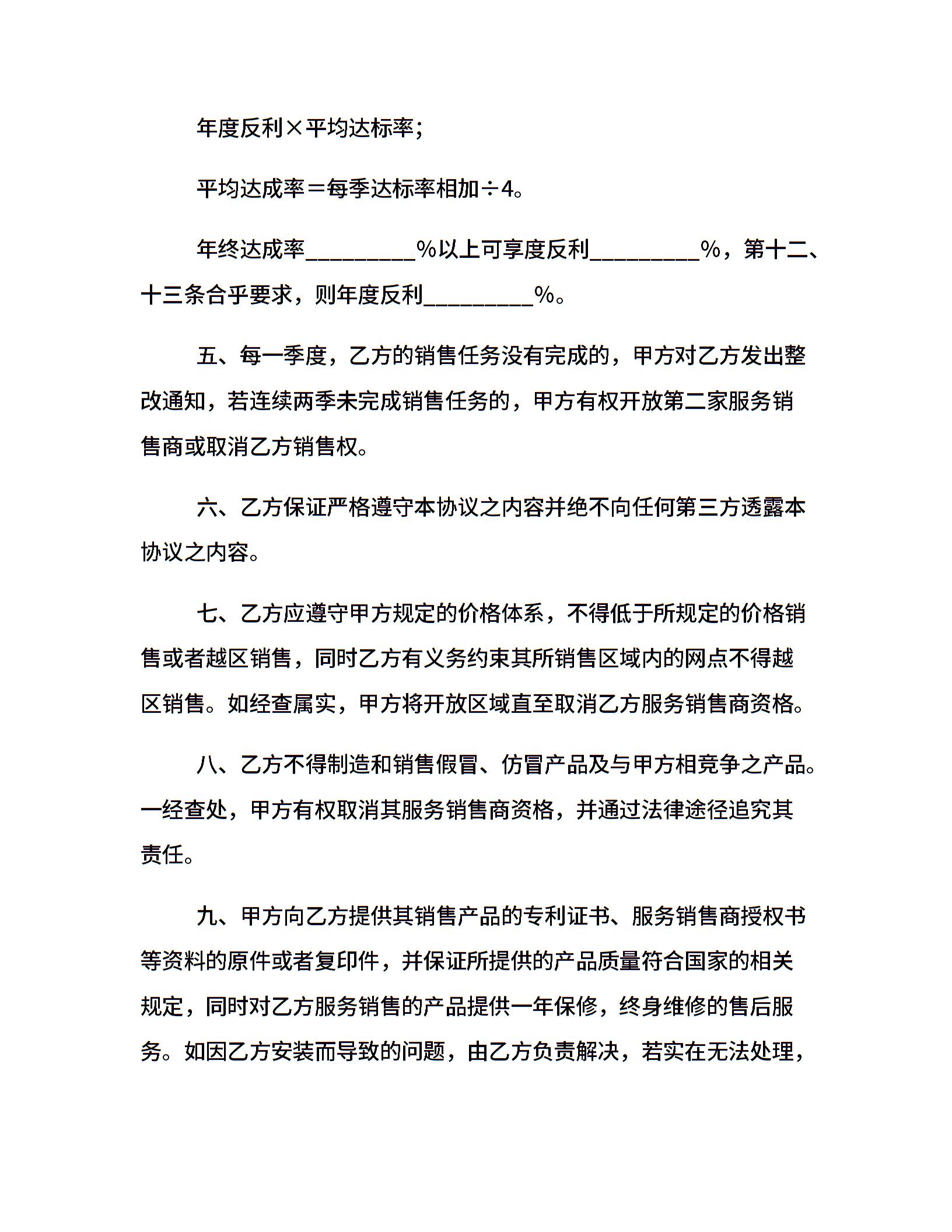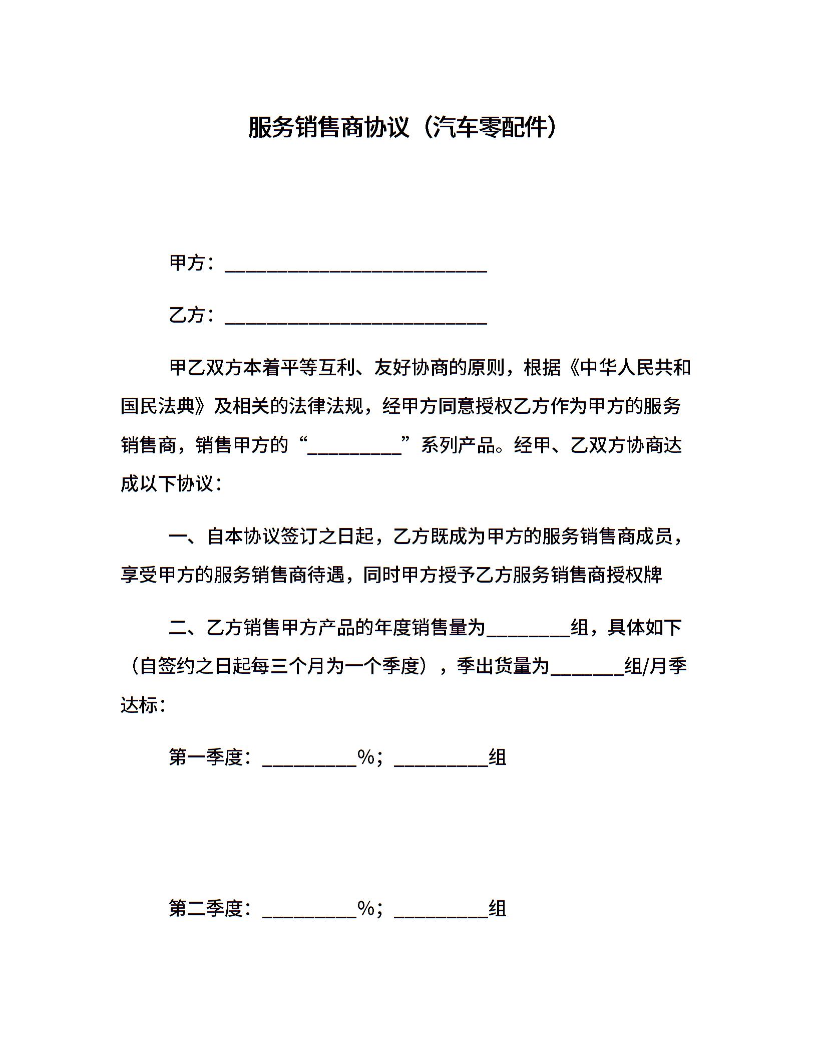 服务销售商协议(汽车零配件)