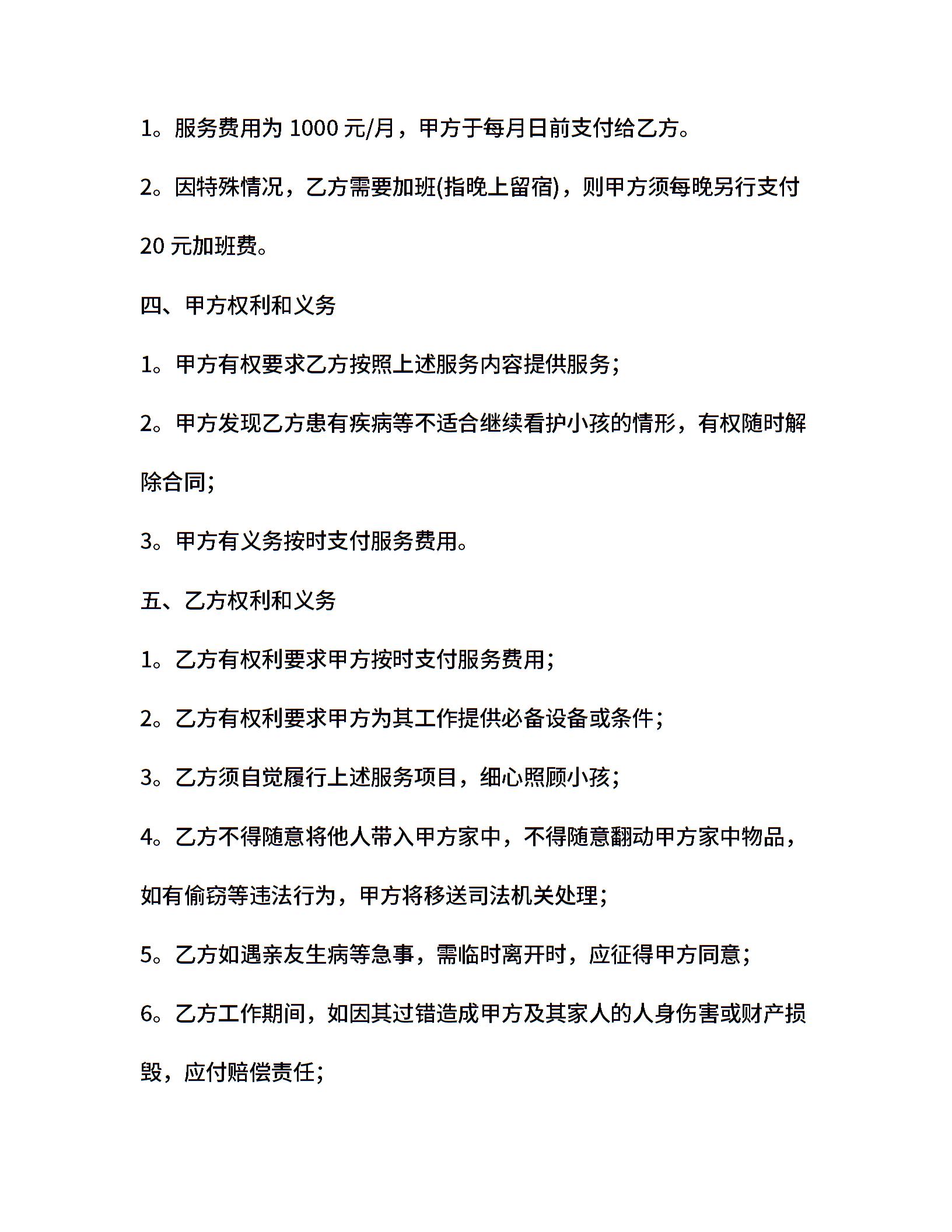 20xx保姆雇佣合同范本 (2)