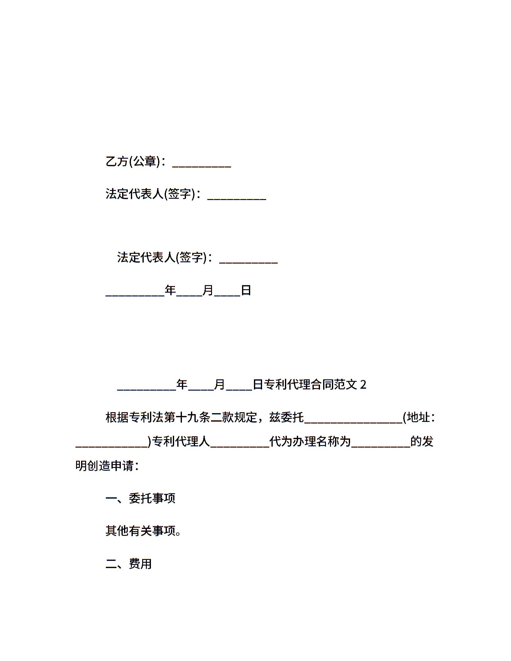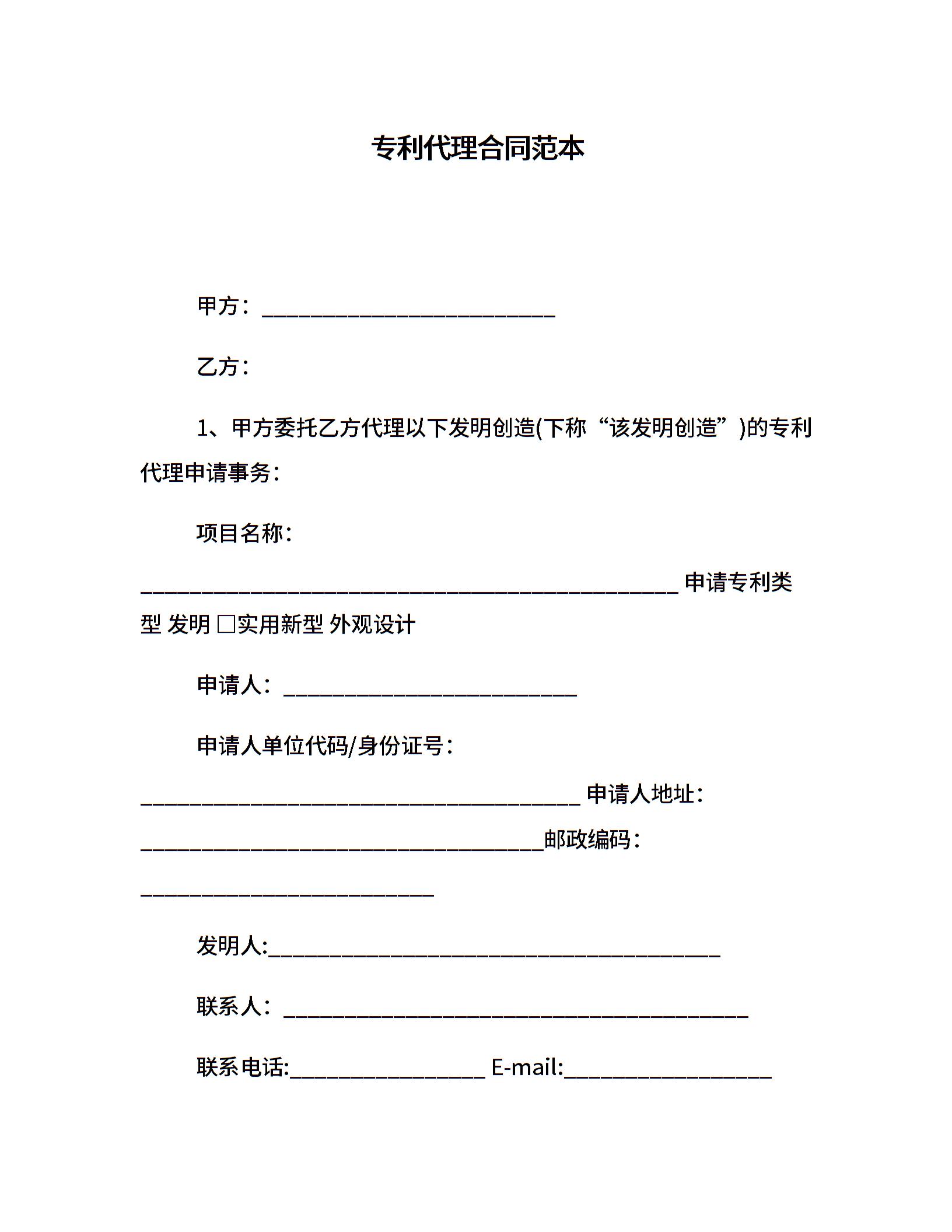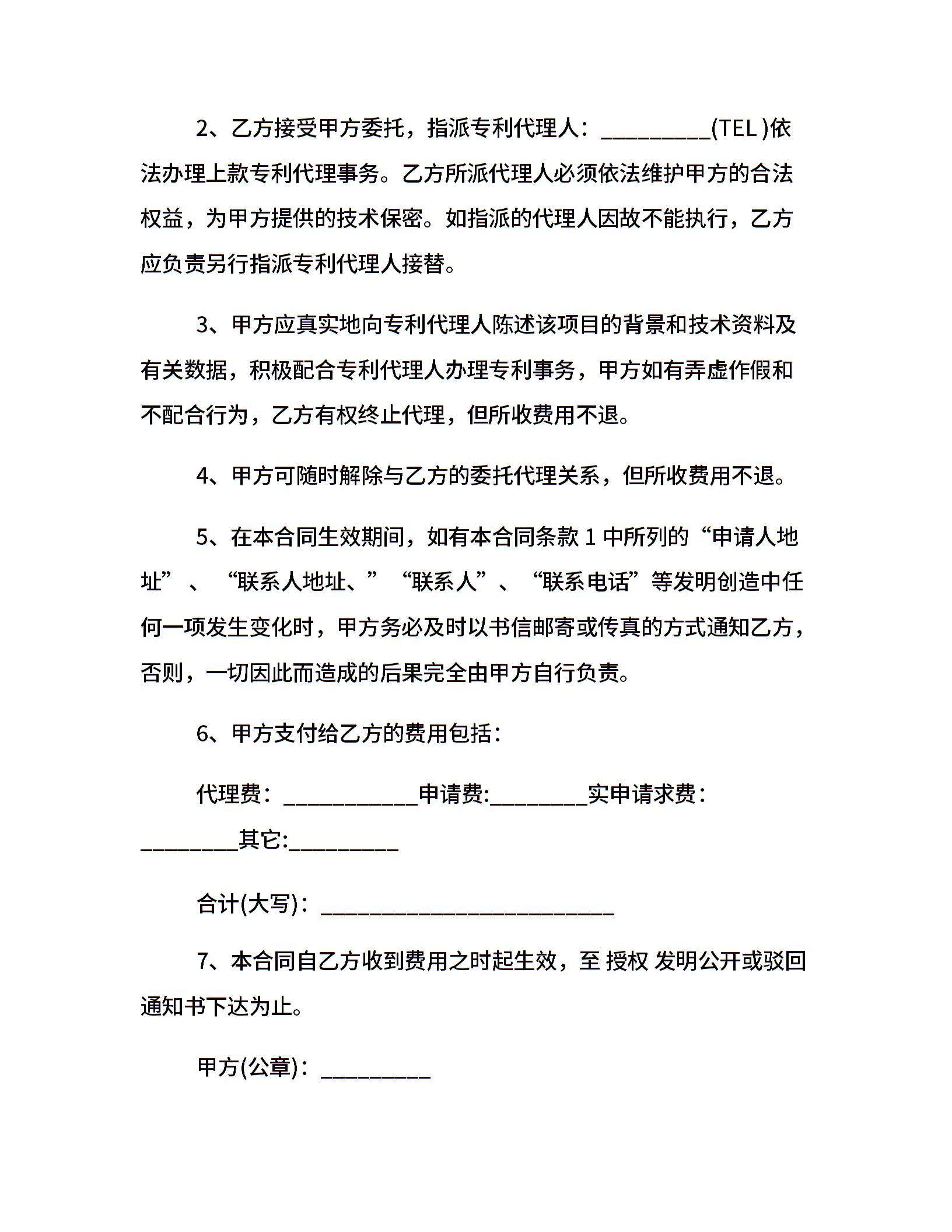 专利代理合同范本