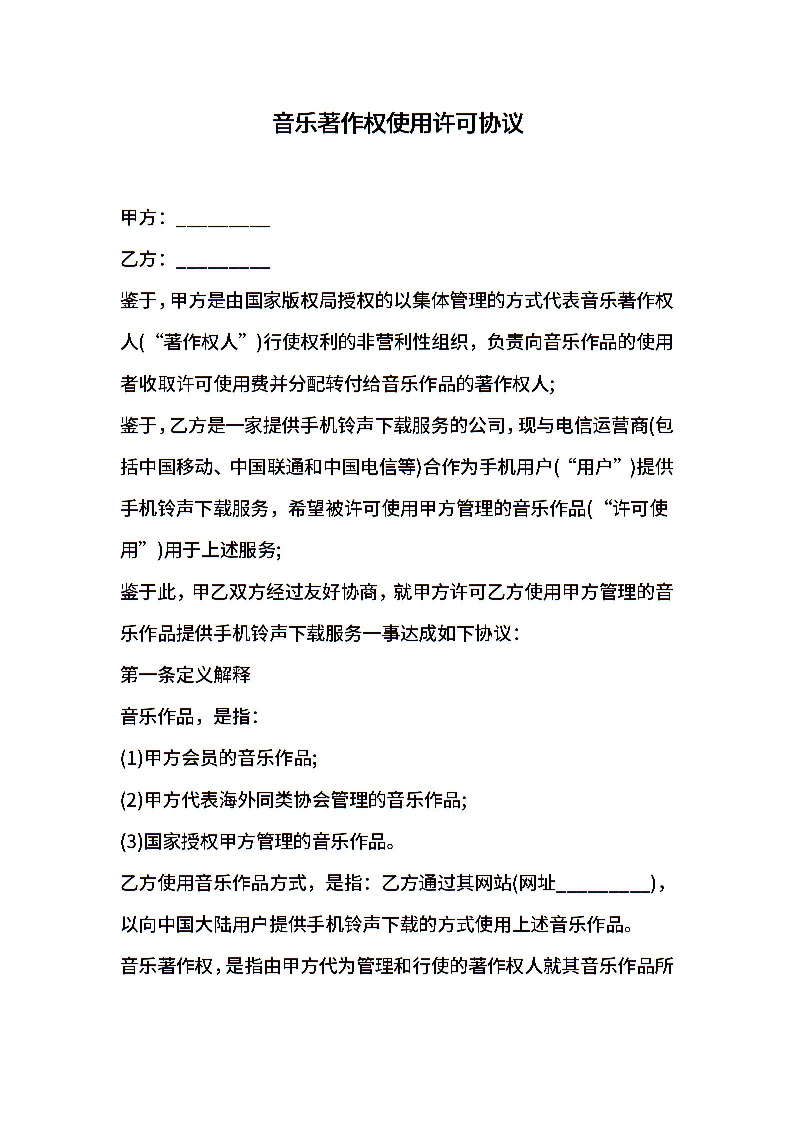 音乐著作权使用许可协议 (2)