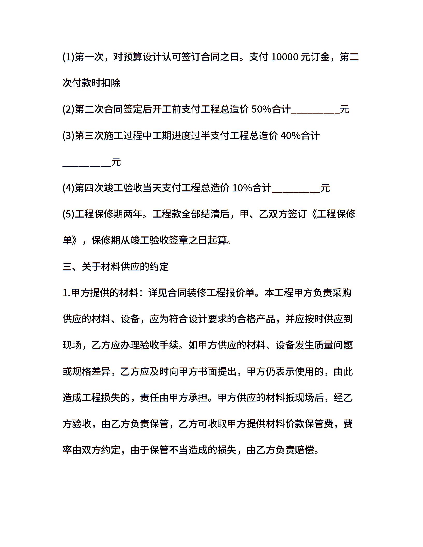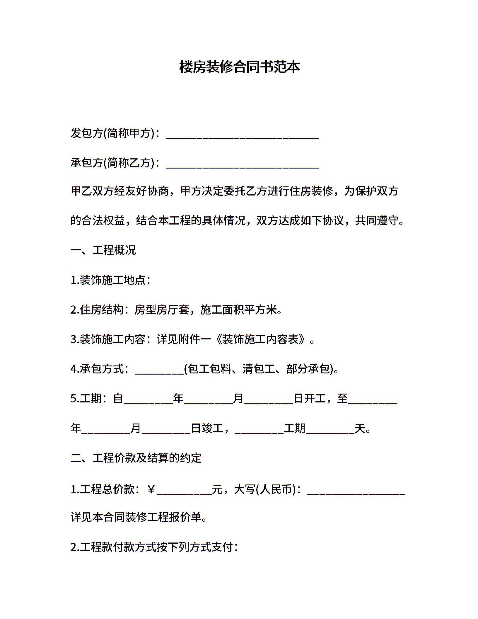 楼房装修合同书范本