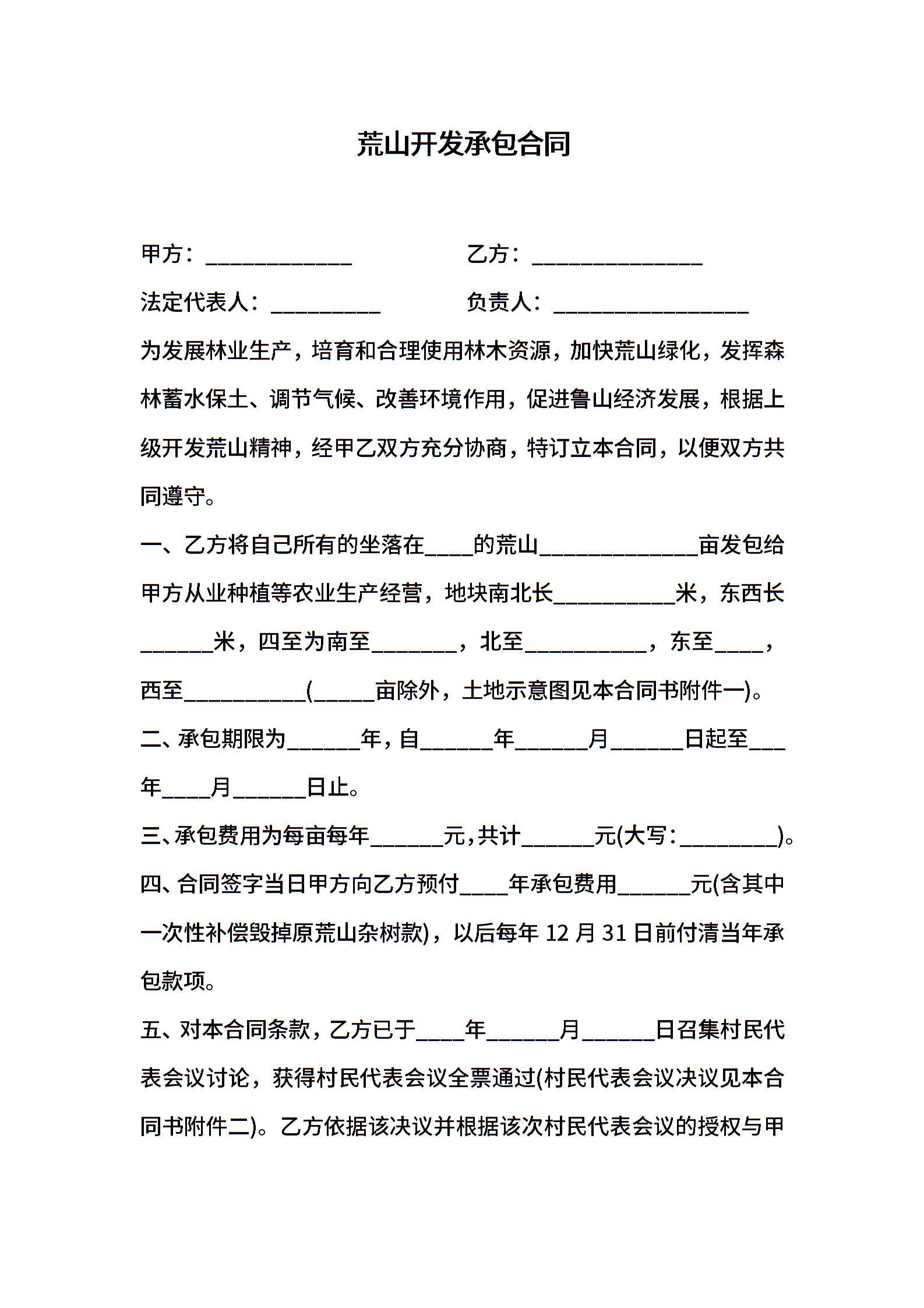 荒山开发承包合同