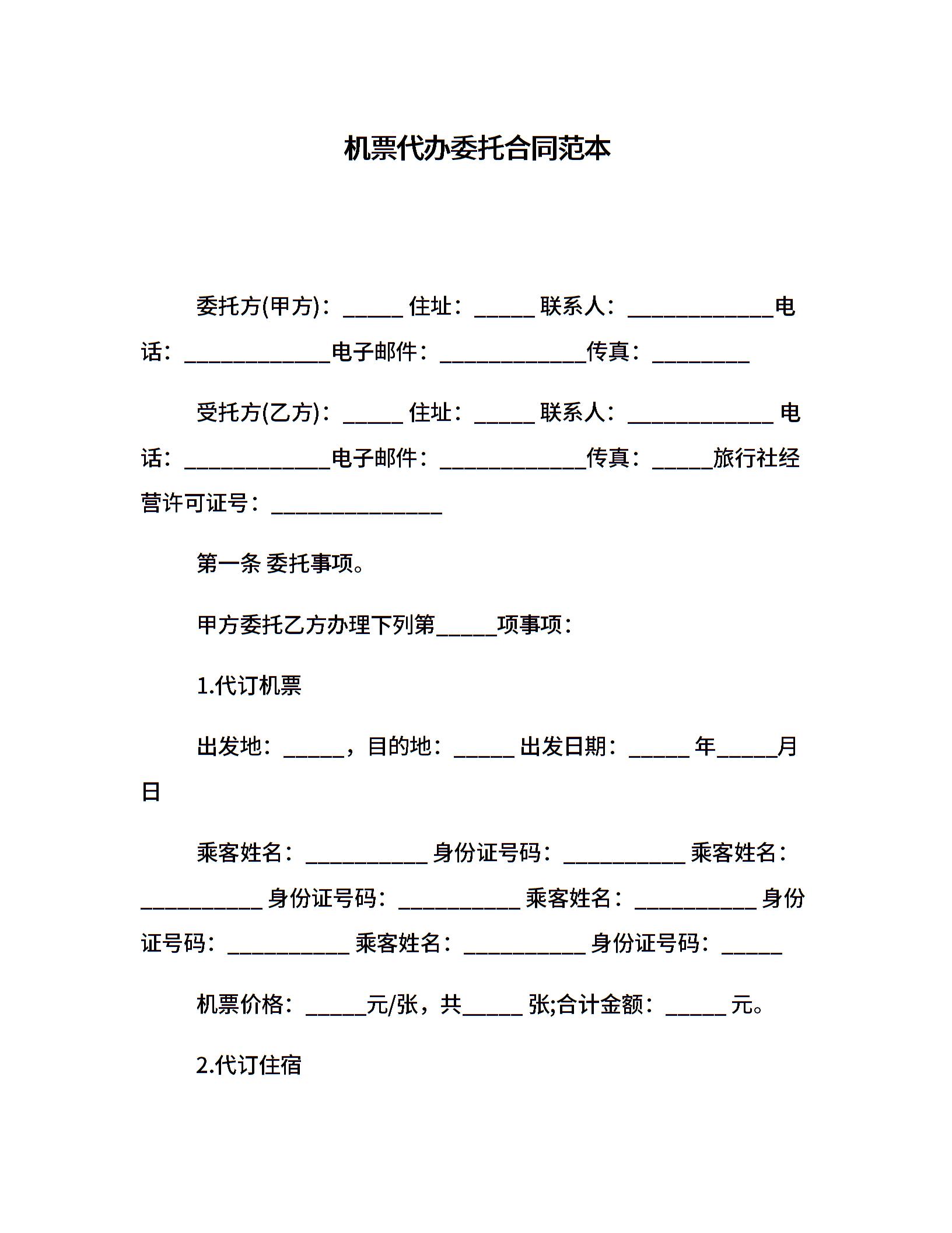 机票代办委托合同范本